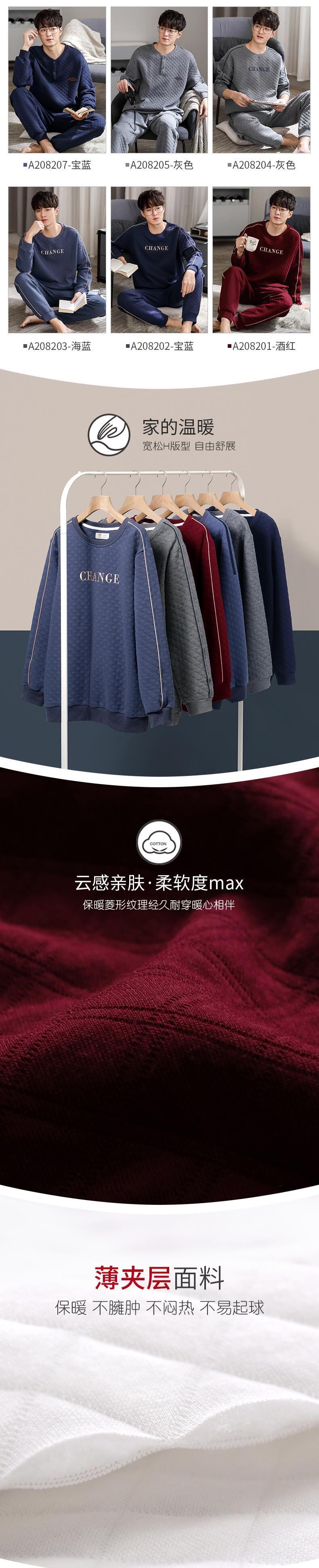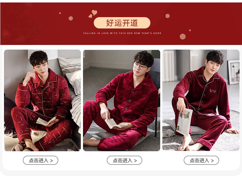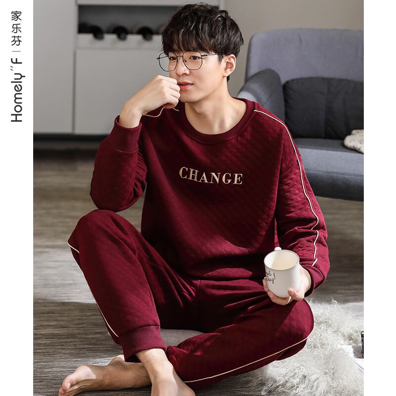 パジャマメンズ春秋長袖純綿厚手ホームサービスメンズ秋冬モデル出生薄綿ビッグレッド jial57994401368