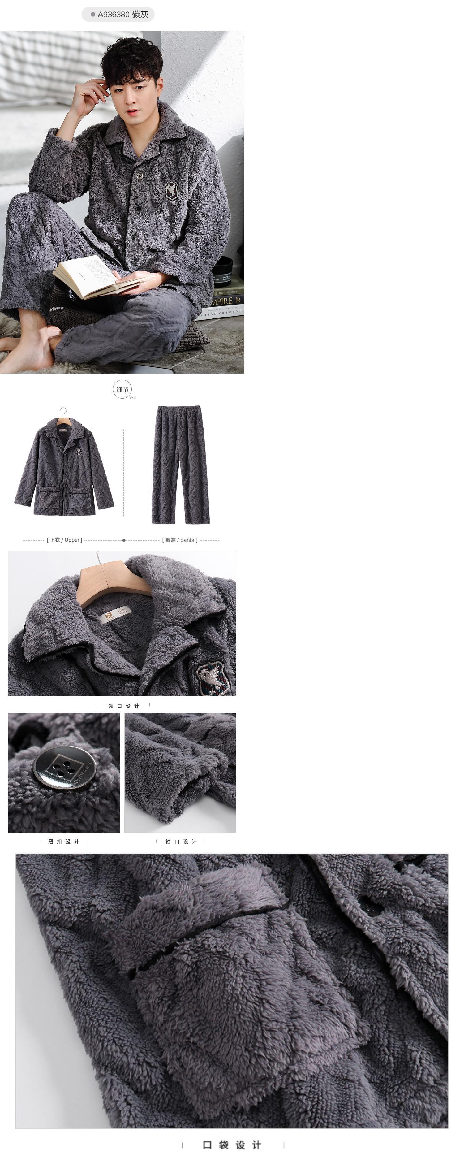 カルフールパジャマメンズ秋冬モデル冬サンゴフリース増粘プラスベルベットウォームフランネルホームサービスメンズ冬 jial47470079423