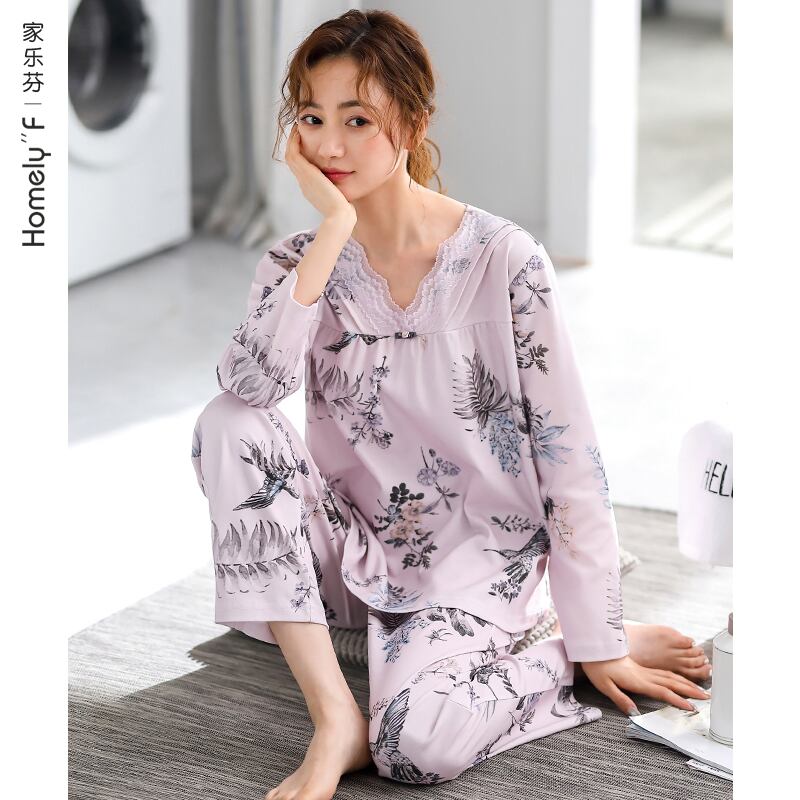 Jialefenパジャマレディース春秋モデル秋綿長袖家庭服綿薄手モデル中年お母さん中年 jial61631106513