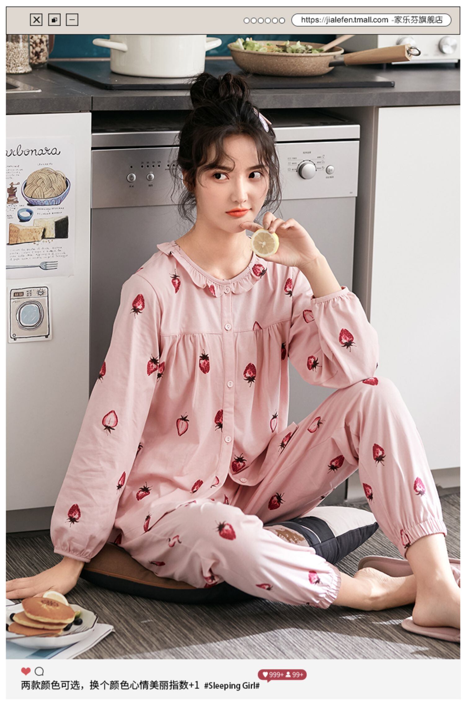 パジャマレディース春秋モデル秋秋純綿長袖ホームサービスコットン風キュートな薄手ツーピーススーツ jial70054692537
