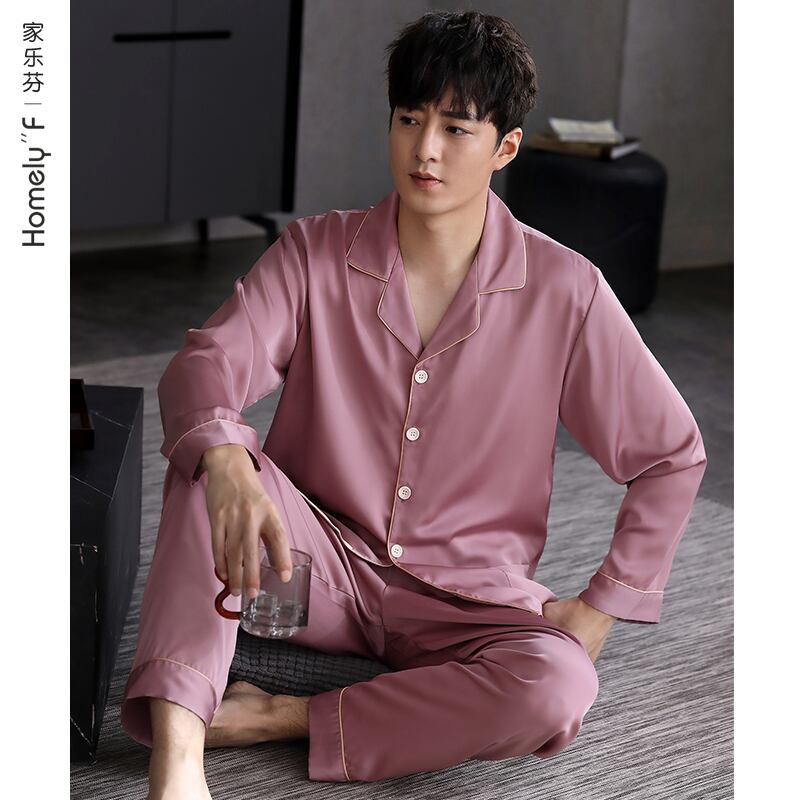 パジャマメンズ春夏シルクアイスシルク長袖ホームサービスメンズ薄春秋モデル秋のシルクスーツ jial29078238213