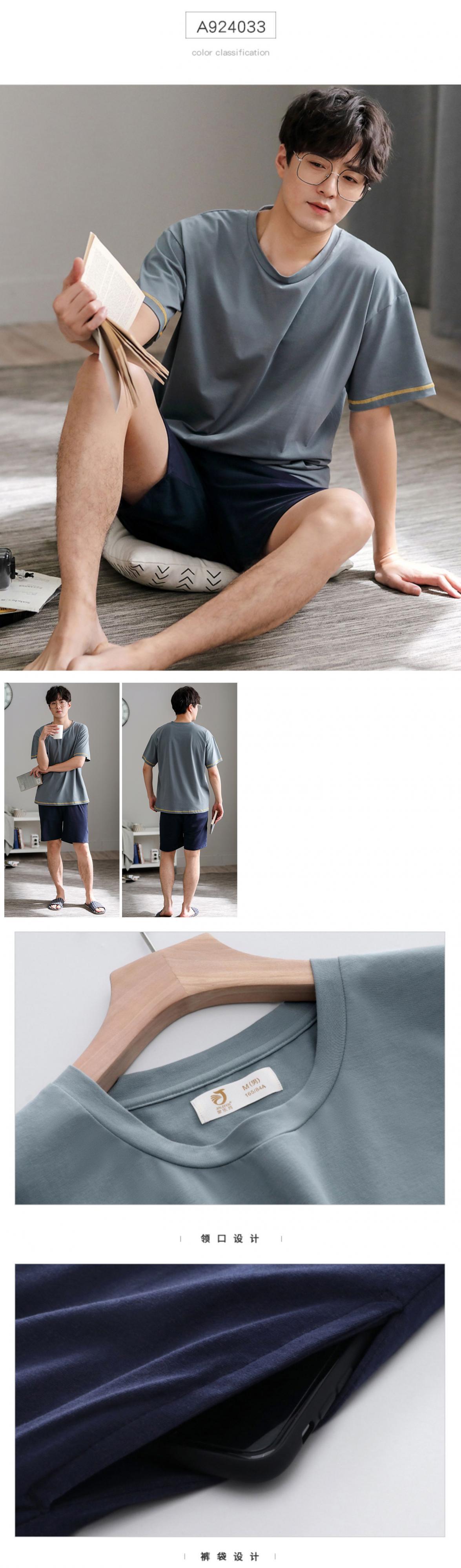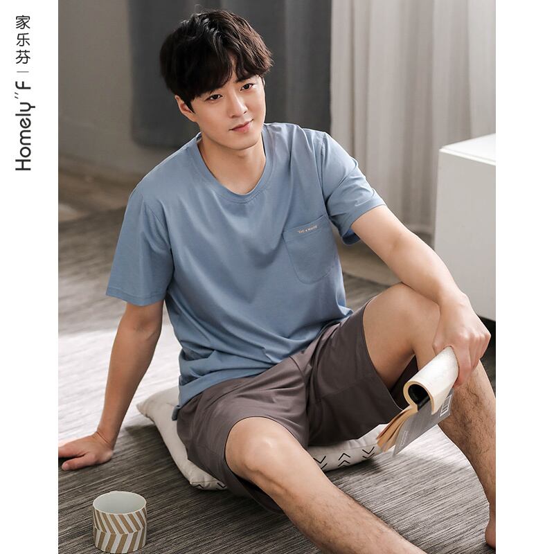 カルフールパジャマメンズサマーコットン半袖ショーツホームサービスメンズメンズサマー薄手コットンスーツ jial51013222331