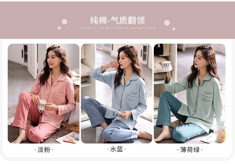 パジャマレディース春秋春秋コットン長袖ホームウェアコットンVネックカーディガン春夏薄手のスーツ jial21702679317