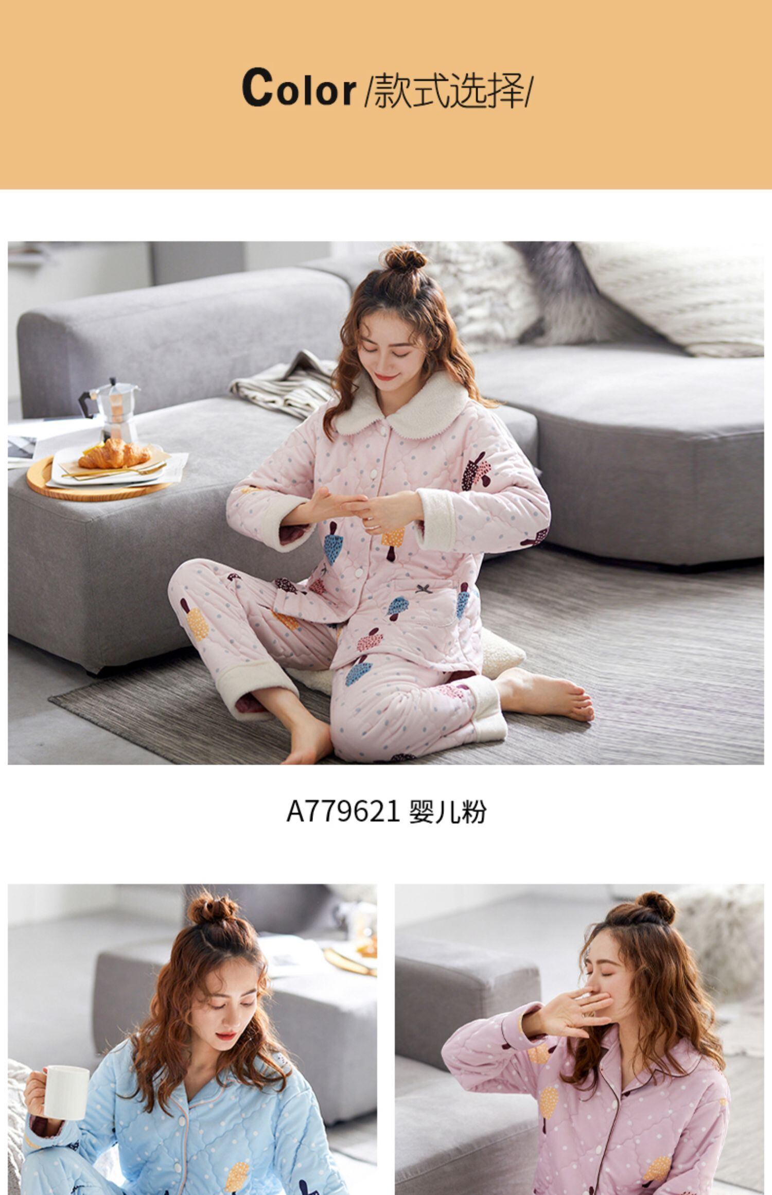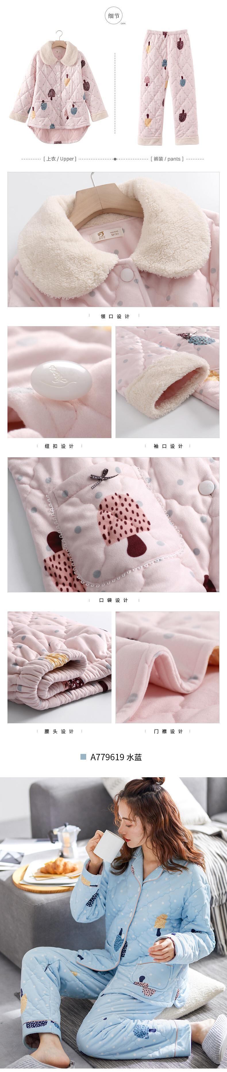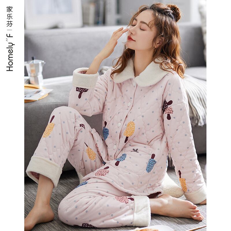 パジャマレディース秋冬冬モデル冬コーラルベルベット増粘プラスベルベットキルティングフランネルウォームホームサービススーツ jial90047933829