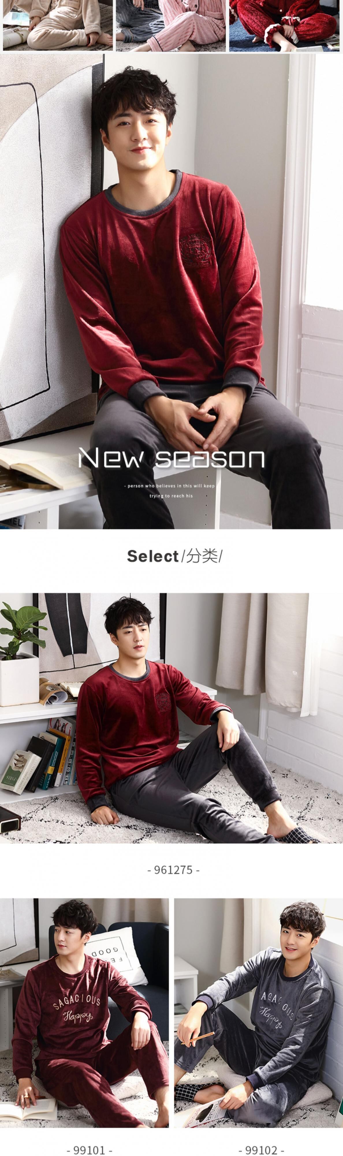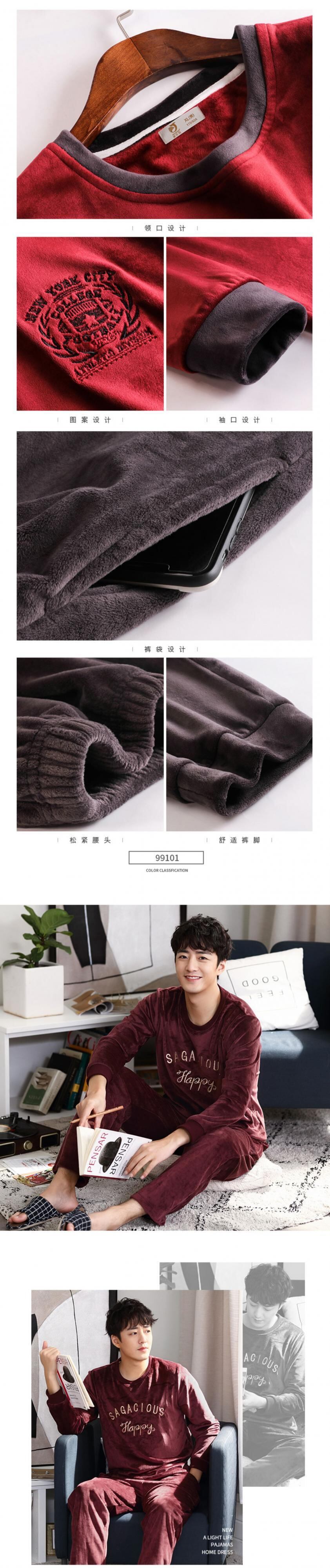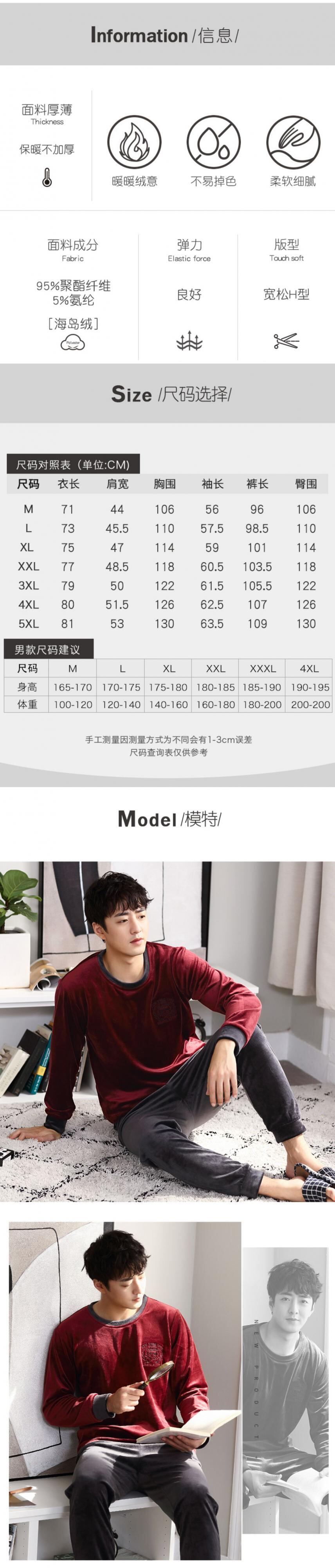 冬のアイランドフリースとフリースの暖かさのパジャマメンズ秋冬モデル厚い春と秋の薄いフランネルコーラルフリースレッド jial49018096428
