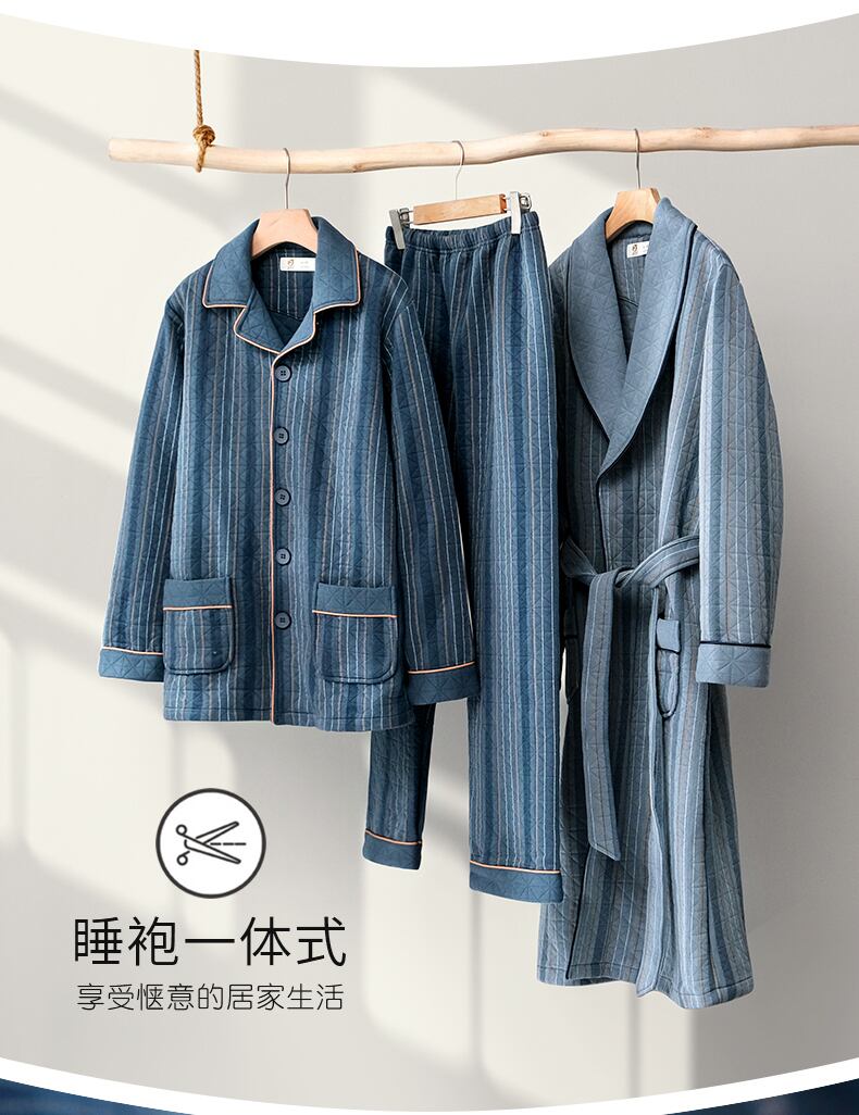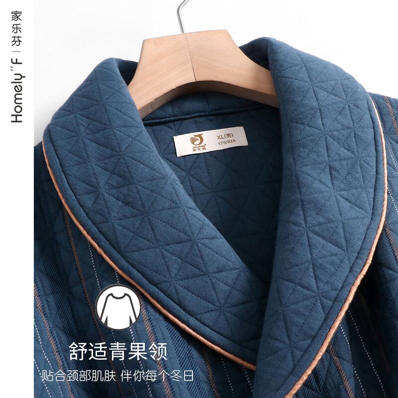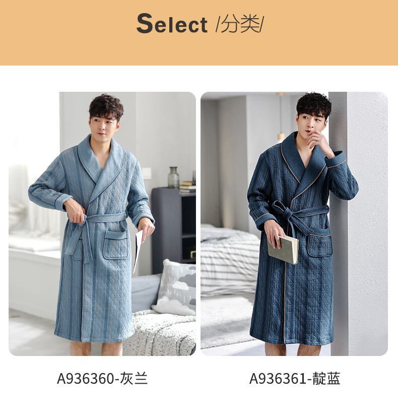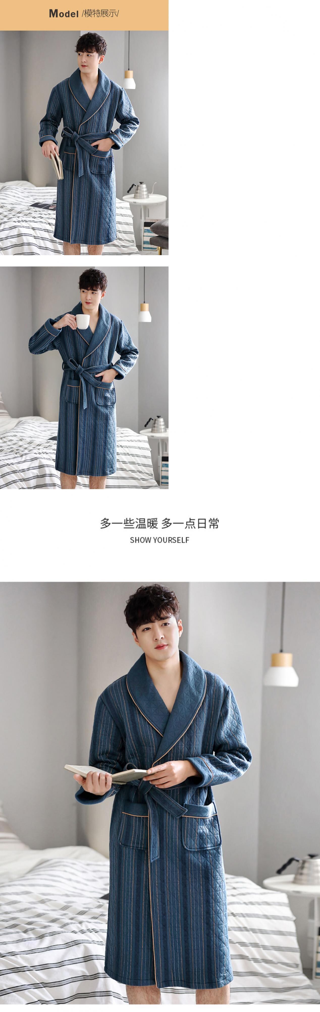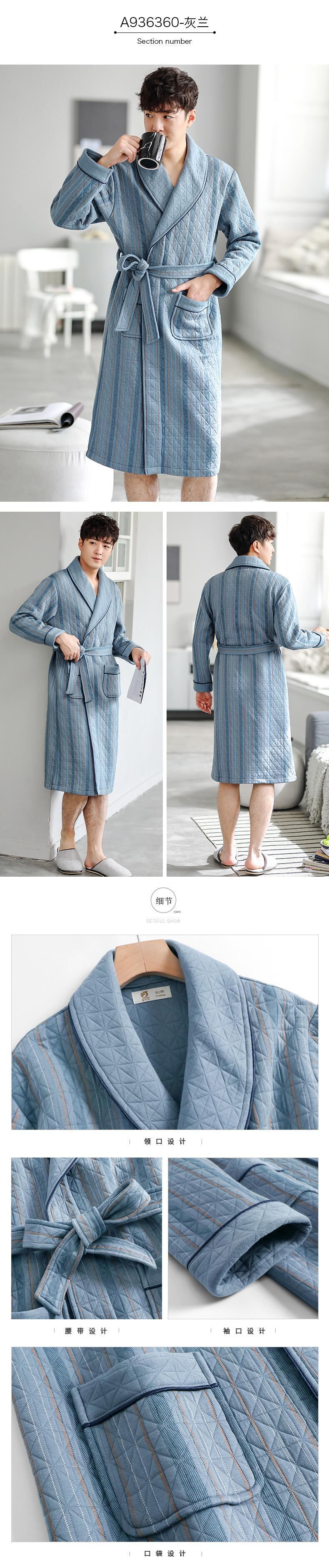 ナイトガウンメンズパジャマ春と秋厚手の純綿秋と冬冬薄いキルティングバスローブバスローブロングエアコットン jial83672309040
