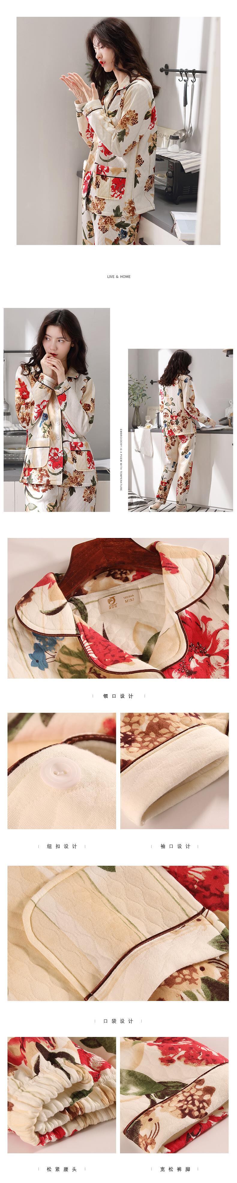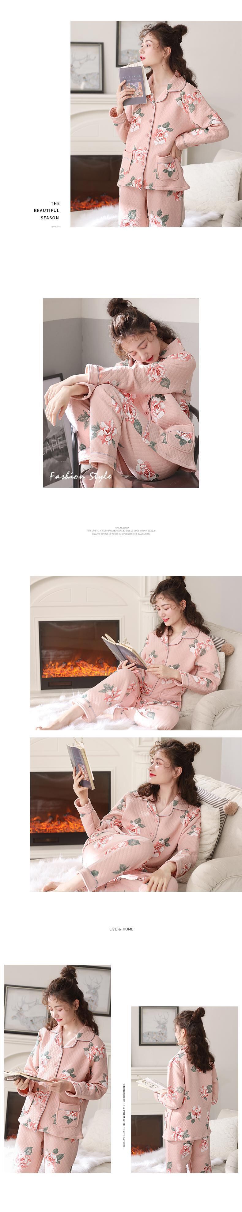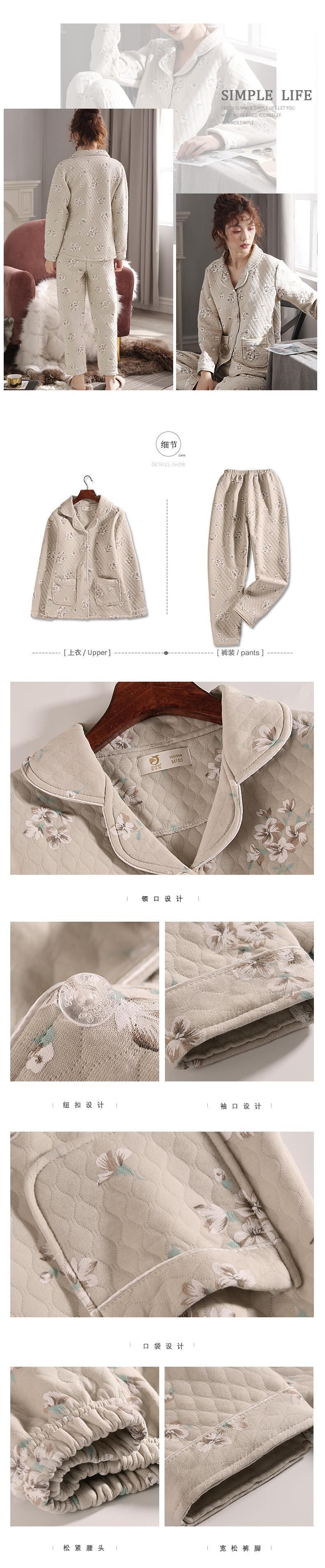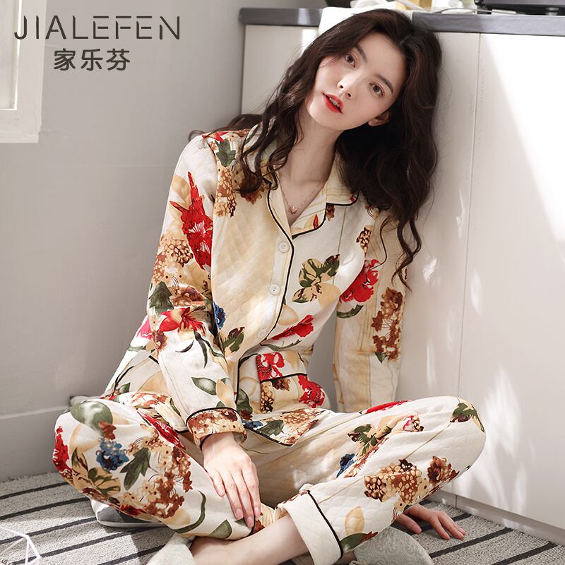 パジャマ女性の秋と冬の厚みのある純綿長袖ホームサービス綿と綿エアコットン中間層と綿の暖かいスーツ jial28150212971