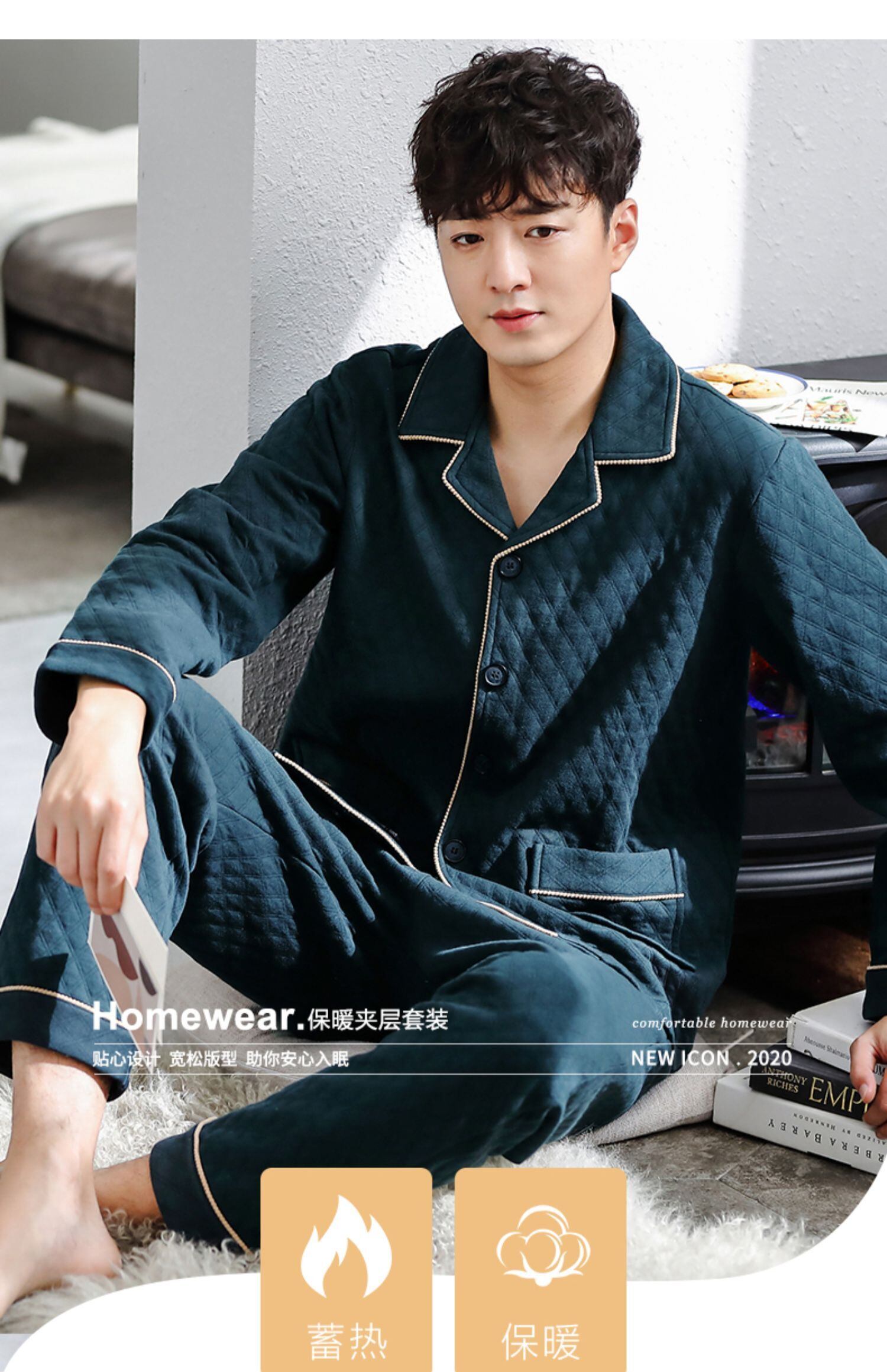 パジャマメンズ春秋厚手長袖ピュアコットンホームサービス秋冬モデル冬キルティング中間層エアコットンコットン jial6625378473