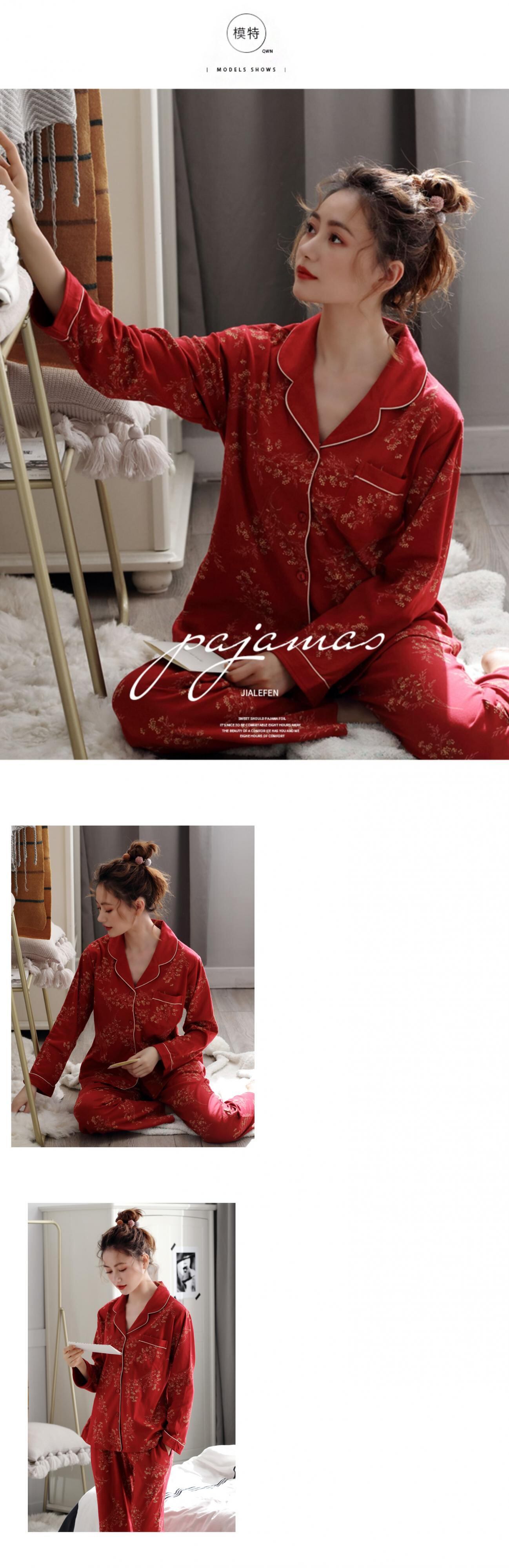 パジャマ女性の春と秋のモデル秋の綿長袖家庭服綿薄いモデル春の母大きな赤い出生年 jial89060394109