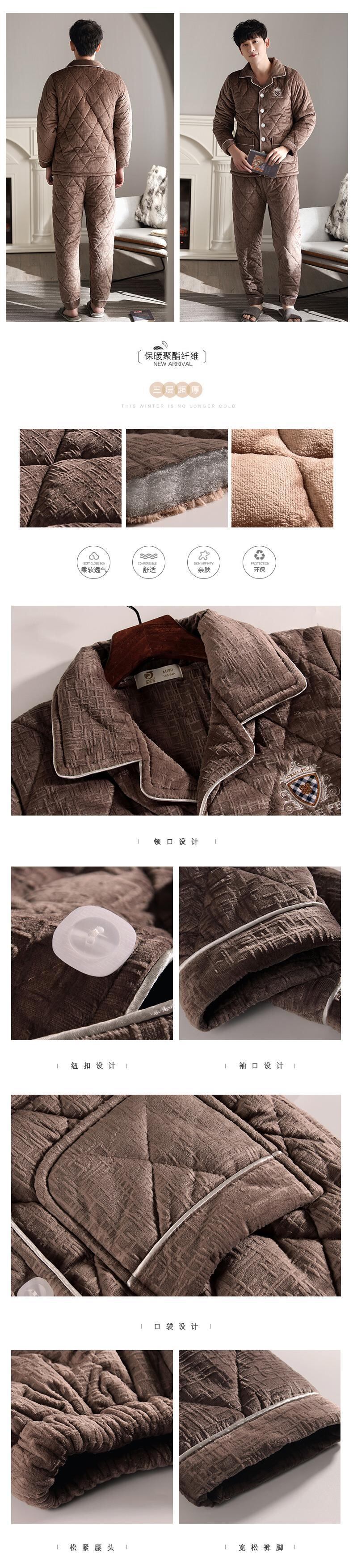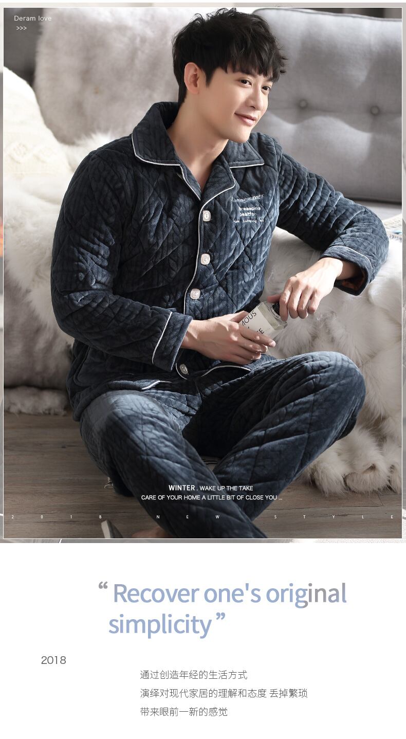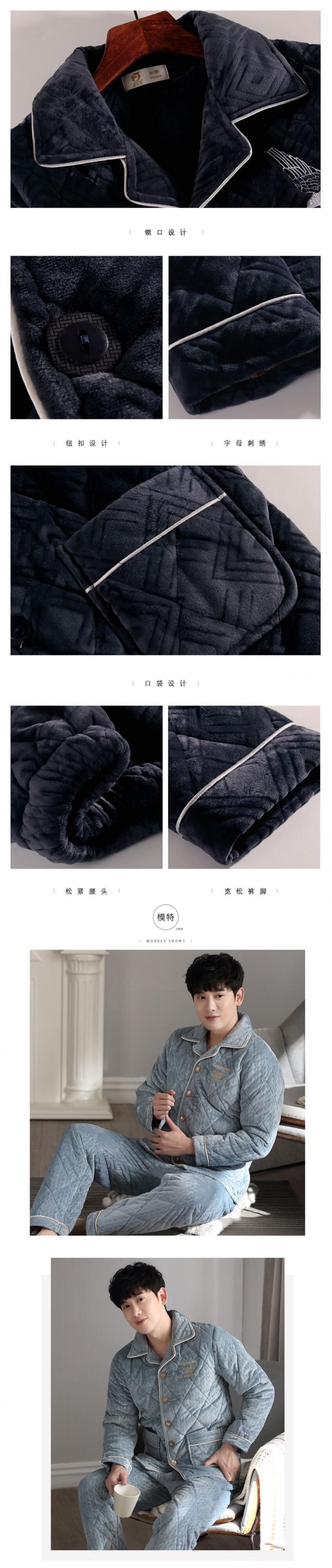 パジャマメンズ冬サンゴフリースキルトジャケット秋冬3層厚フランネルで暖かく、ベルベット冬大サイズ jial31935219848