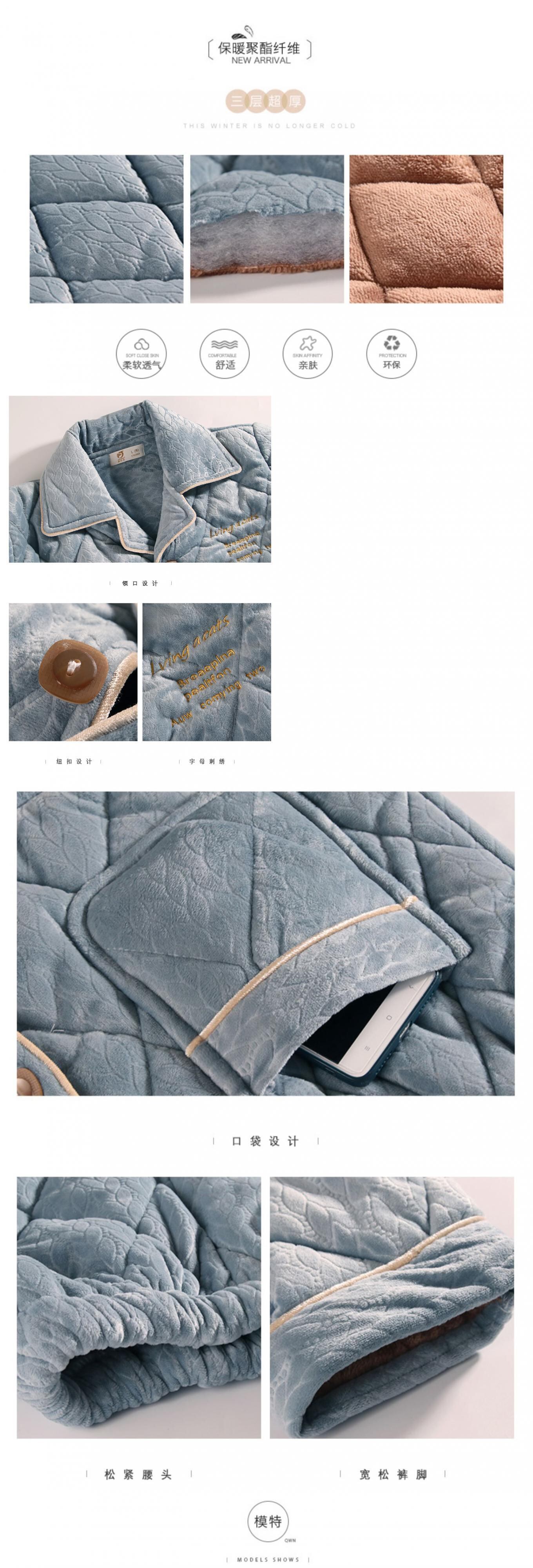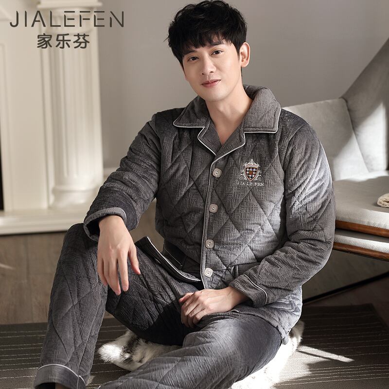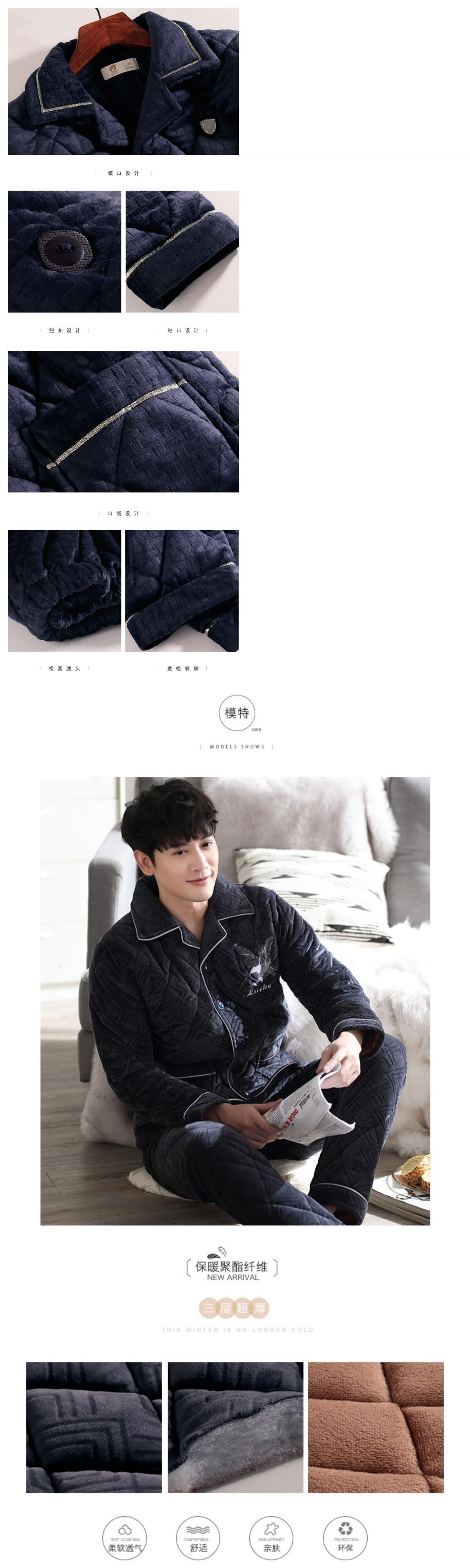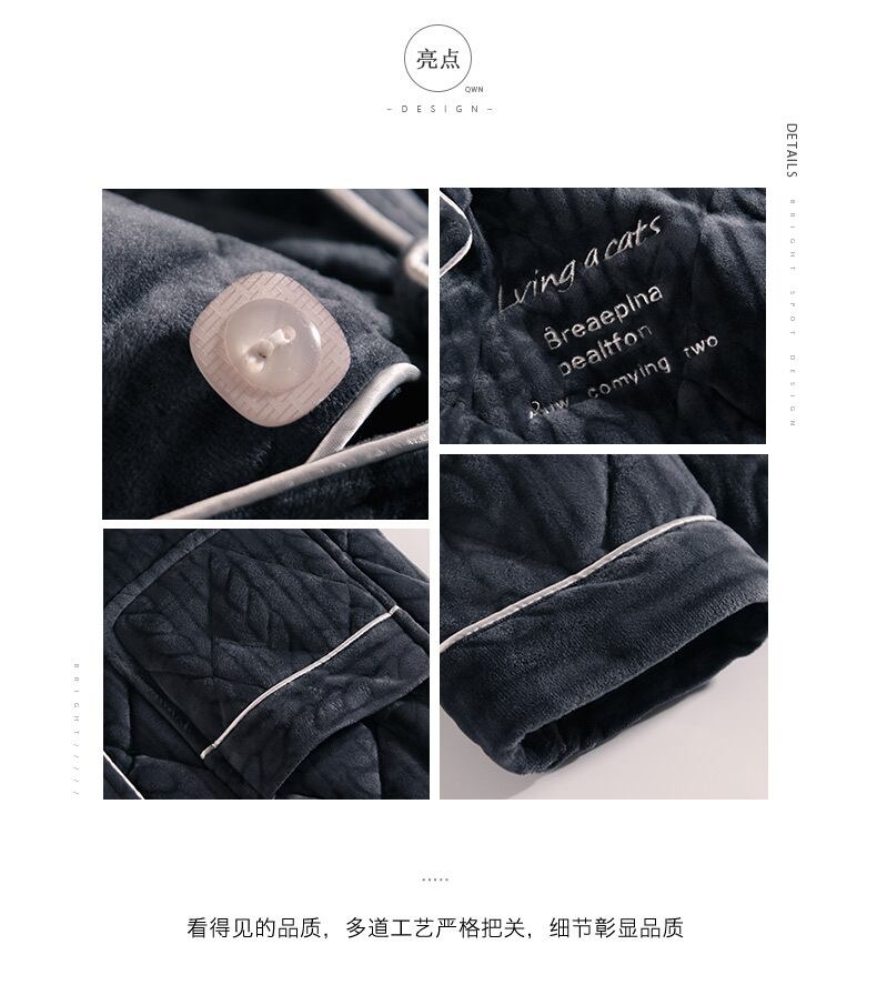 パジャマメンズ冬サンゴフリースキルトジャケット秋冬3層厚フランネルで暖かく、ベルベット冬大サイズ jial31935219848