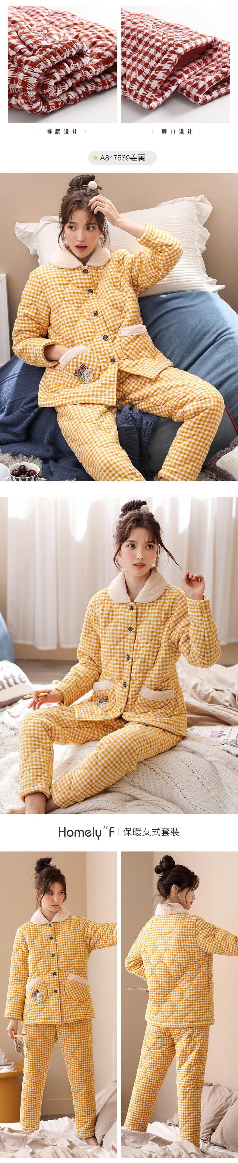 カルフールパジャマレディース秋冬3層キルティングジャケットキルティングコットンピュアコットン秋暖かいホームサービス jial25968081525