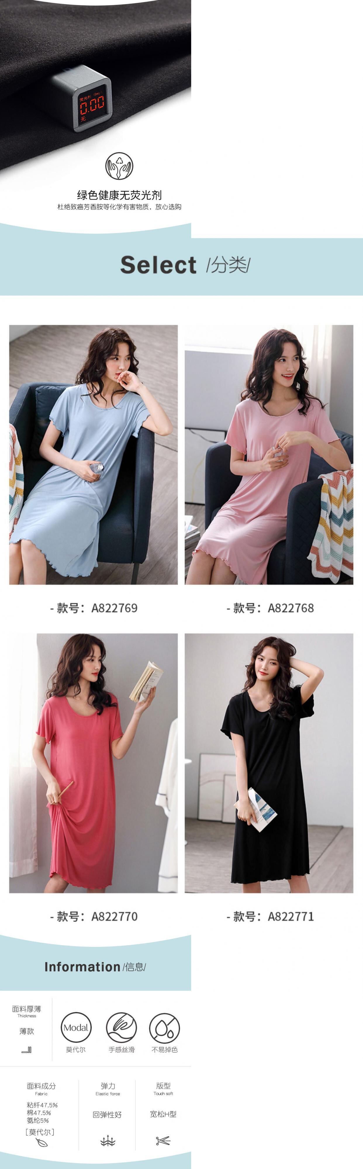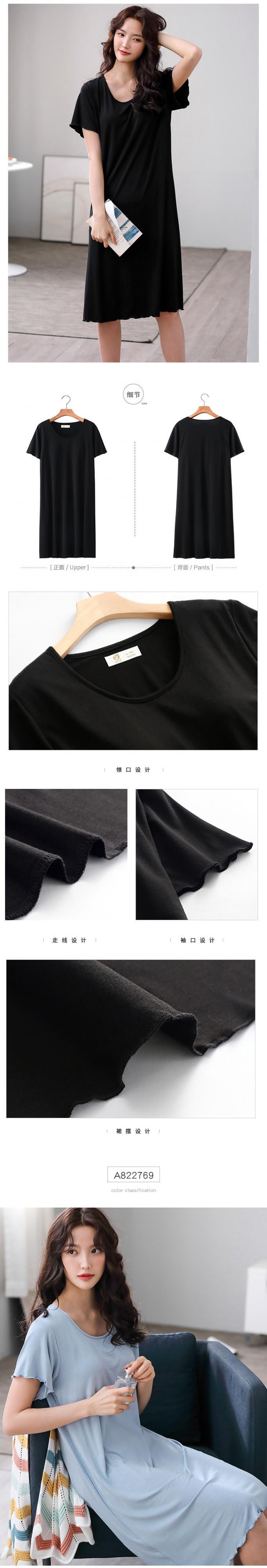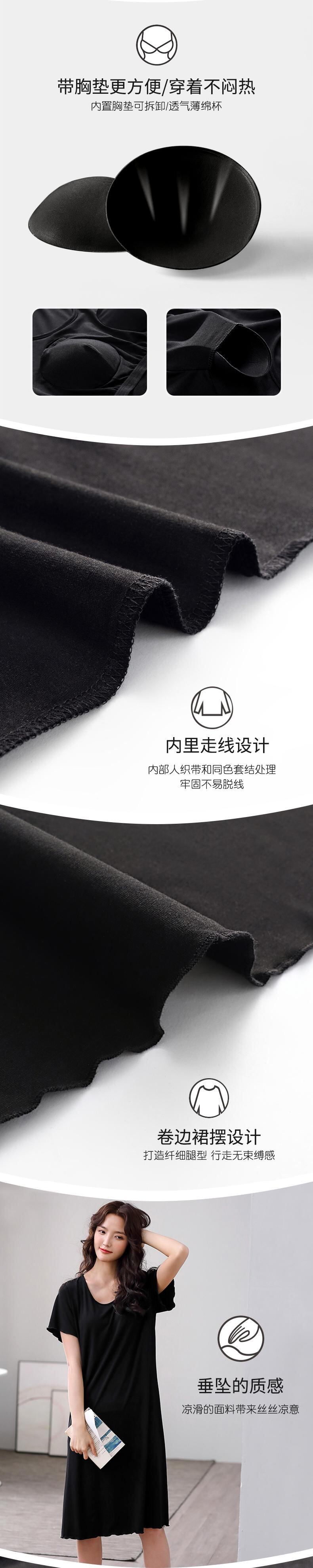 胸パッド付きブラナイトドレス女性パジャマモーダルコットン夏夏半袖薄手のセクションは膝の長いセクションを介してペダリングすることができます jial32074446668
