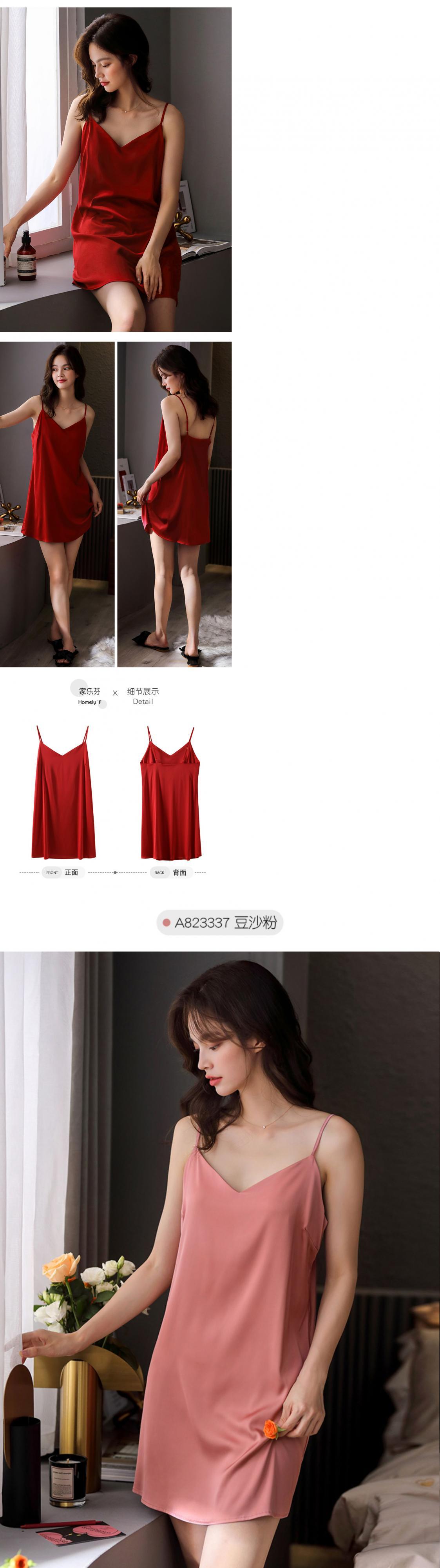 スリングネグリジェレディースパジャマ夏夏シルクアイスシルクシミュレーションシルク薄片セクシー出生年赤 jial1210932958