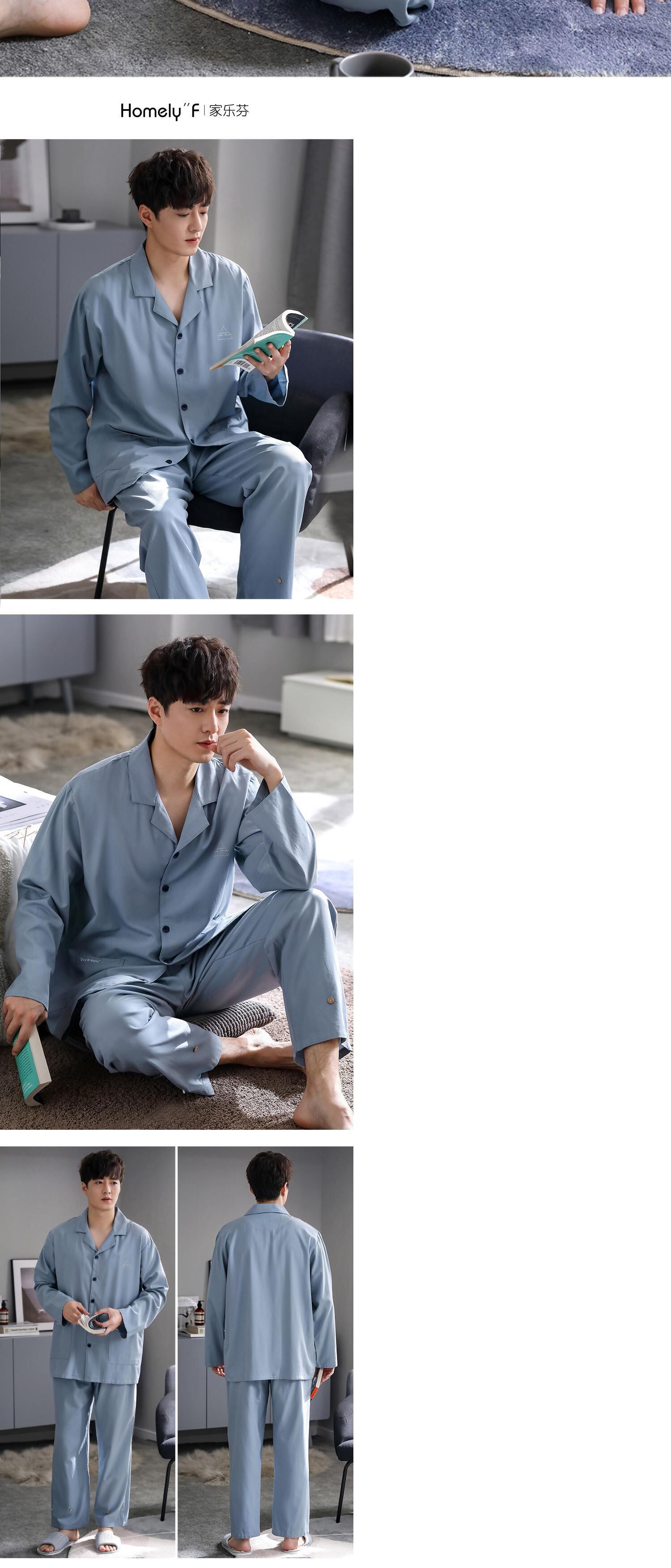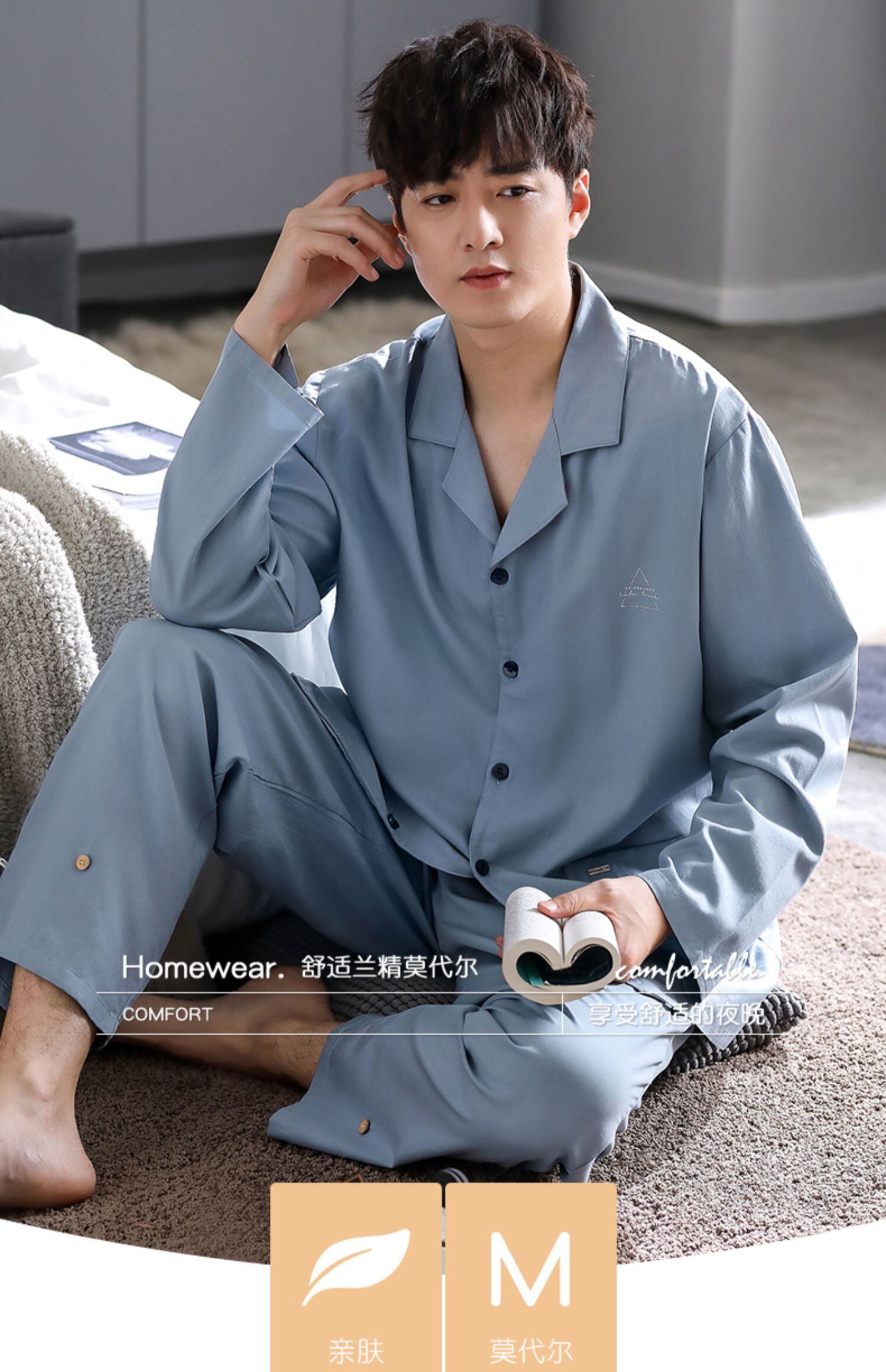 パジャマメンズ春夏レンチングモーダル長袖ホームウェアメンズ春秋秋薄手のフォーシーズンセット jial98997668824