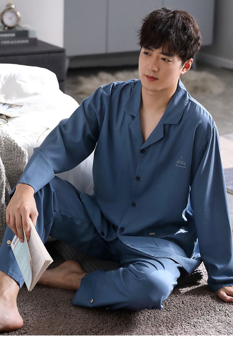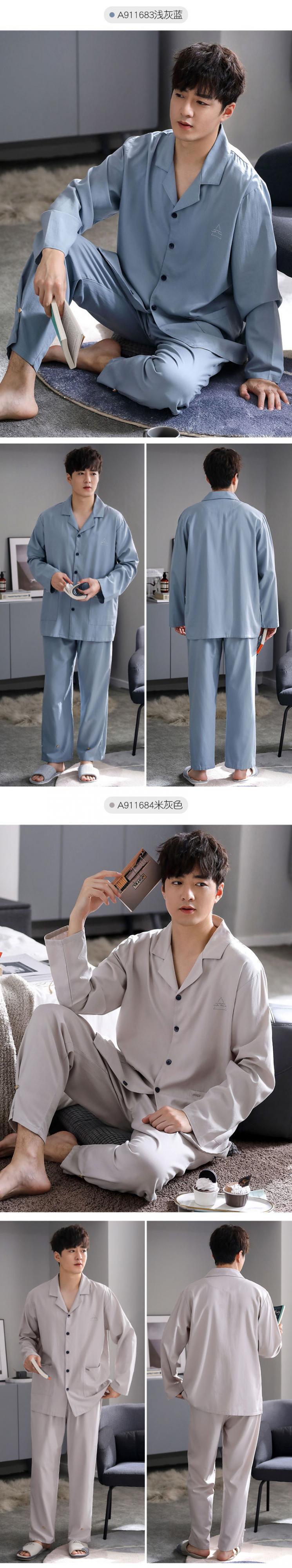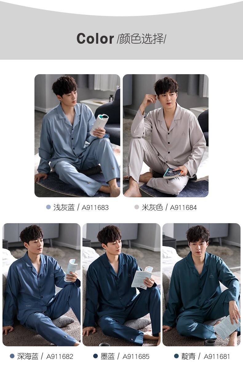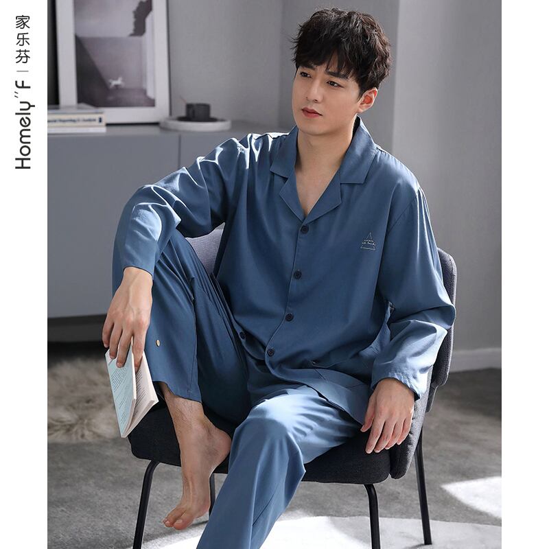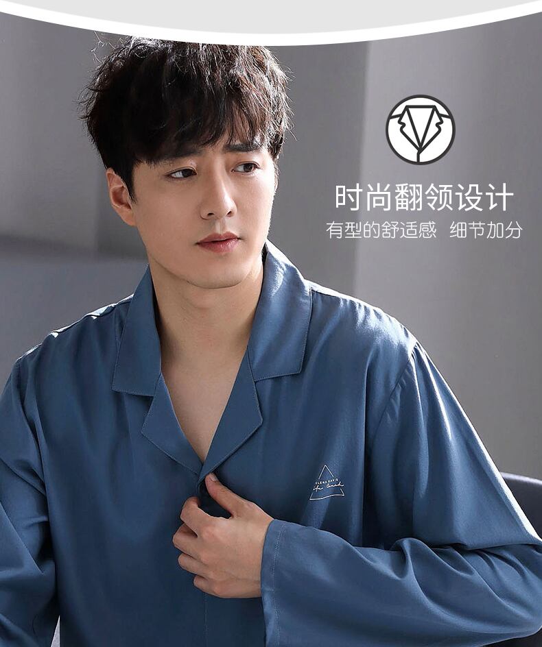 パジャマメンズ春夏レンチングモーダル長袖ホームウェアメンズ春秋秋薄手のフォーシーズンセット jial96828720997