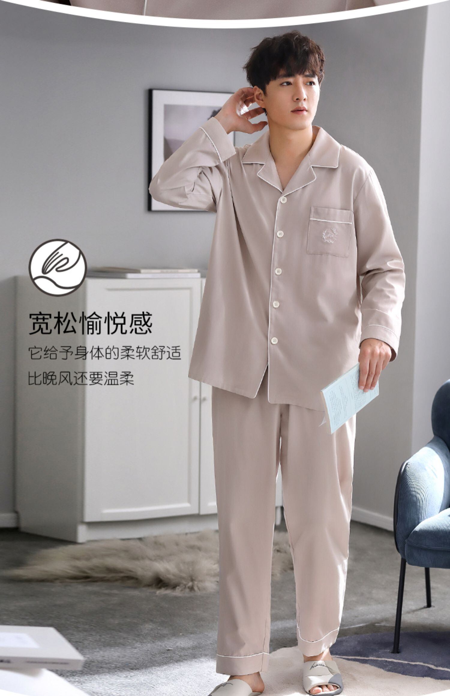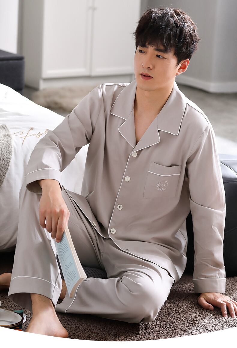 パジャマメンズ春夏モーダル長袖ホームサービスメンズ春秋モデル秋薄手アイスシルク薄手四季 jial1336810530