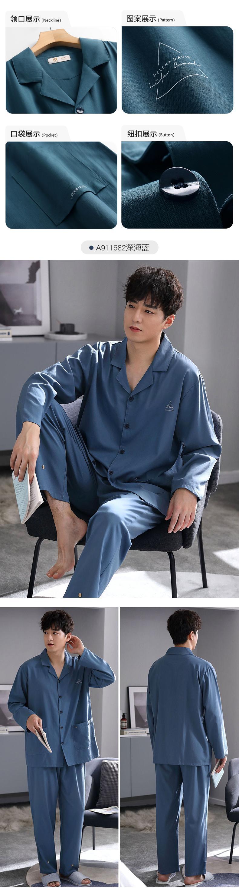 パジャマメンズ春夏レンチングモーダル長袖ホームウェアメンズ春秋秋薄手のフォーシーズンセット jial90449012529