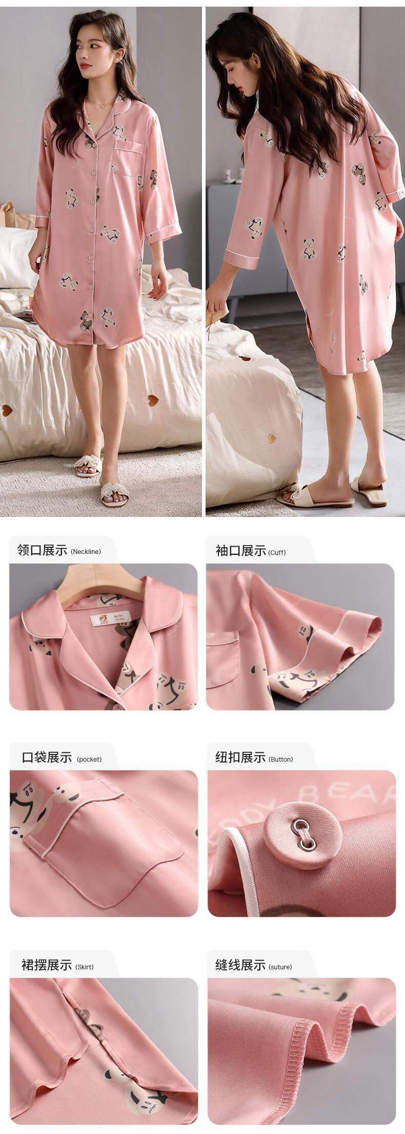 ナイトスカートレディースパジャマ春夏シルクアイスシルク春秋薄手セブンポイントスリーブカーディガンシャツイミテーションシルク長袖 jial88180685366
