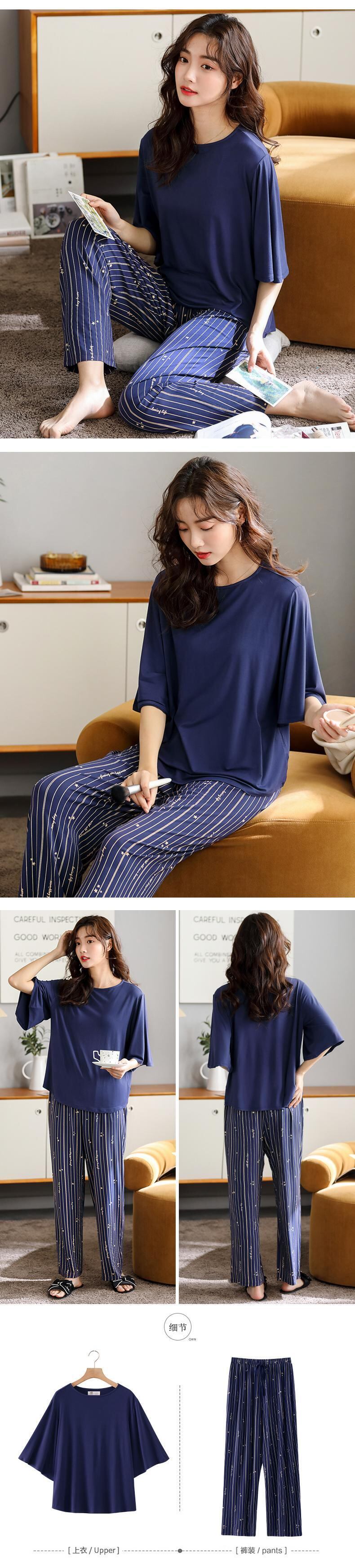 女性用パジャマ春夏薄手春秋モデルモーダル七分袖春ホームサービスカジュアル着れます jial90702290163