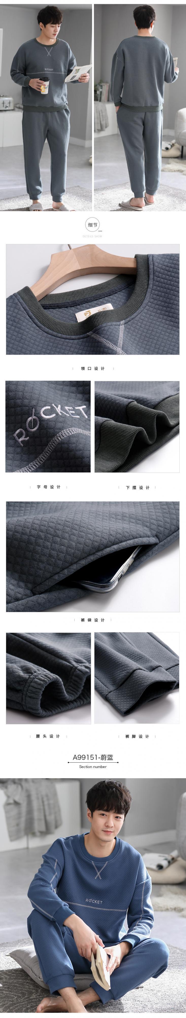 パジャマメンズ春秋厚めピュアコットン長袖ホームサービスメンズコットンエアコットン中間層キルティング秋冬 jial68463512436