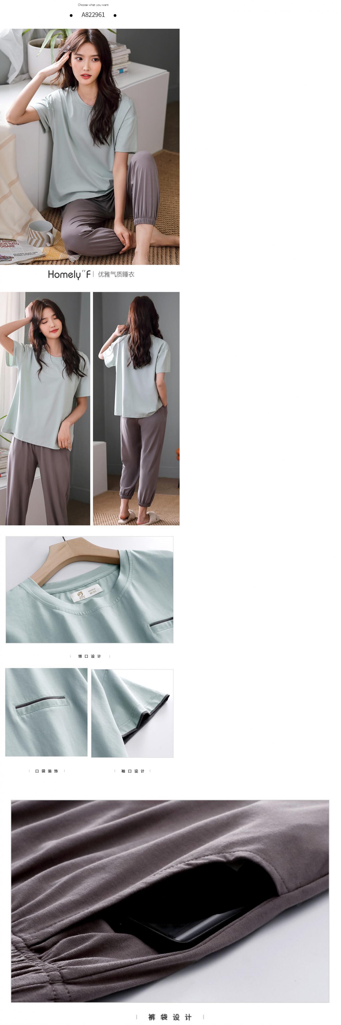 【ライクラコットン】パジャマレディースサマーコットン半袖パンツホームサービスサマーシンコットンカジュアルは屋外でも着用可能 jial54006492468