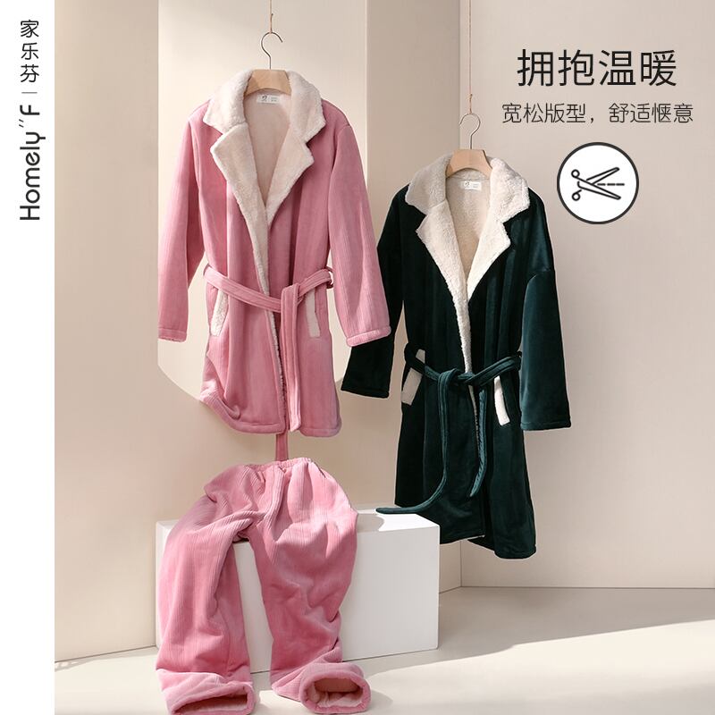 キルトフランネルパジャマ女性の秋と冬のホームウェアナイトガウン暖かいコーラルベルベットの肥厚とベルベットのロングスーツ jial87046897750