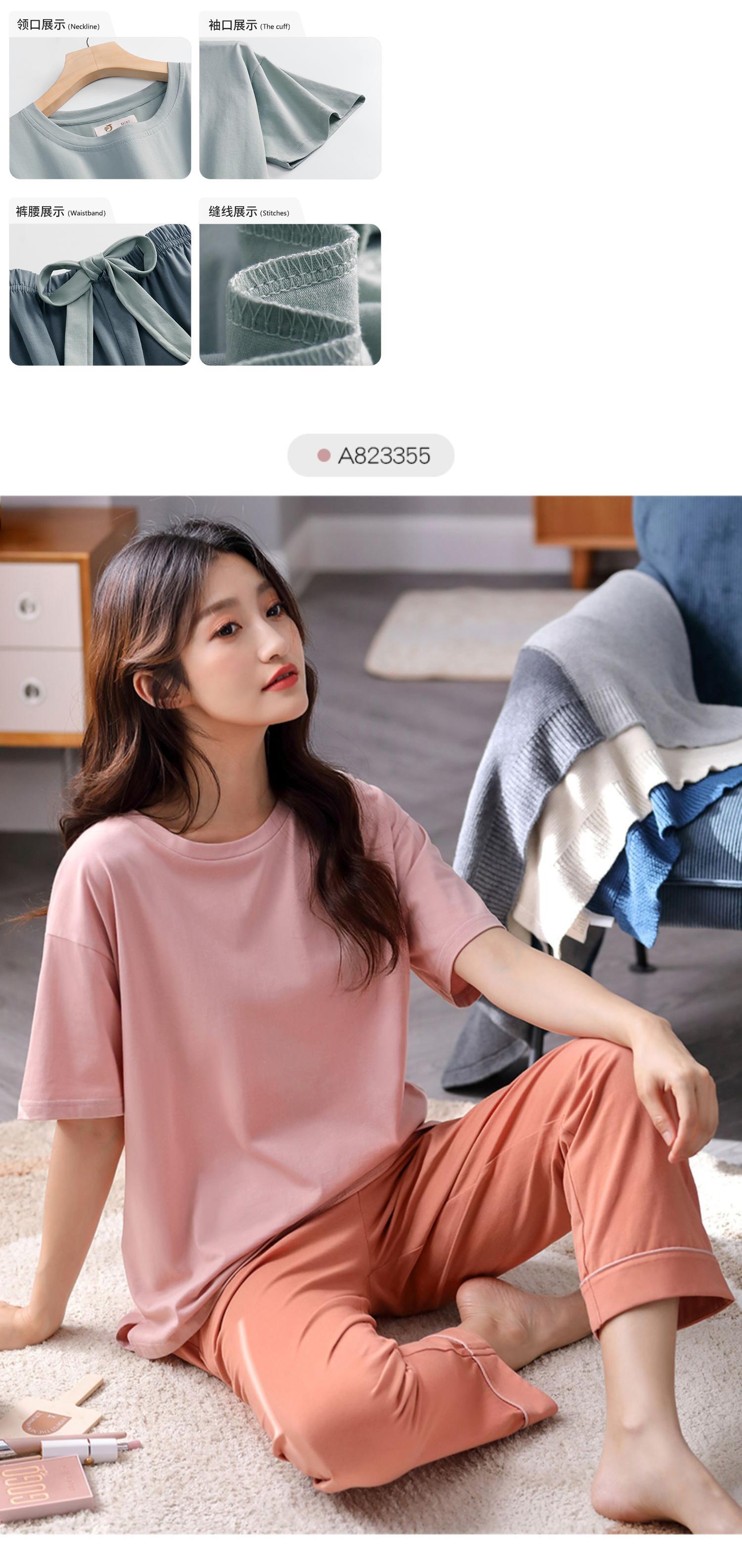 【ライクラコットン】パジャマレディースサマーコットン半袖パンツホームサービスサマー薄手着用可能 jial79755082411