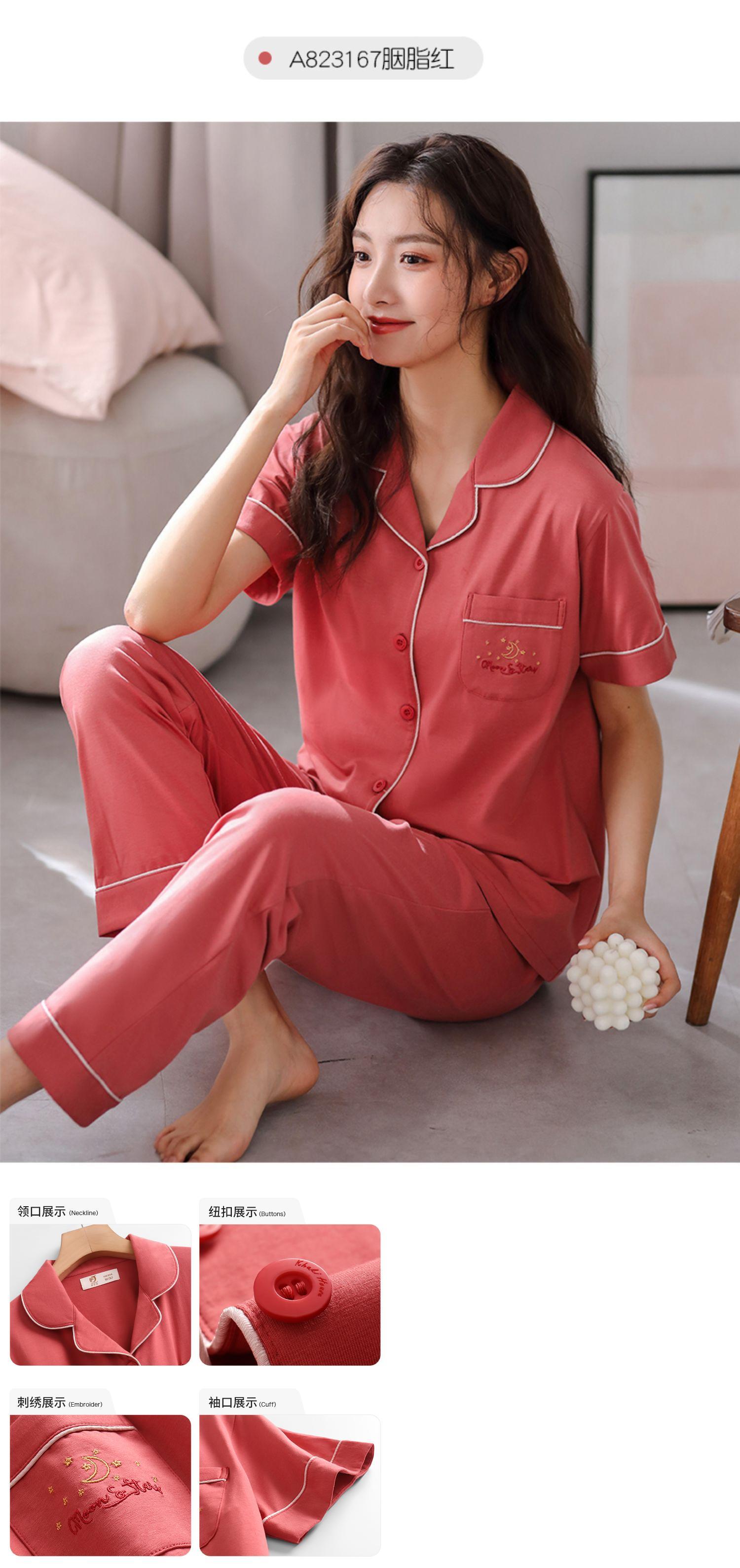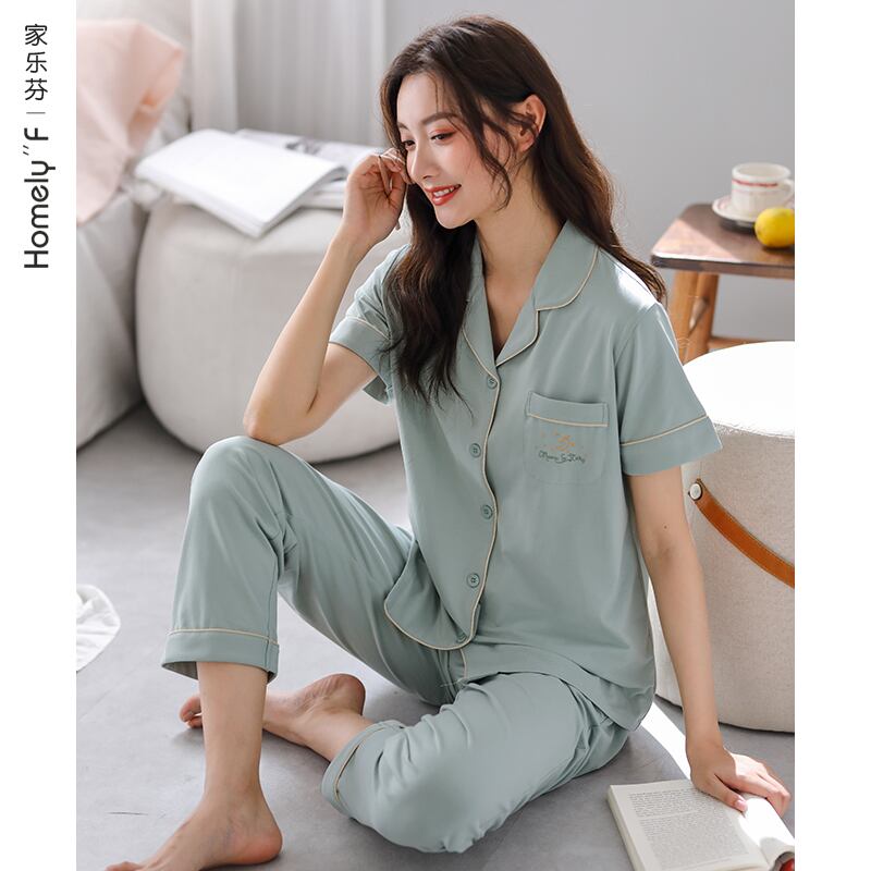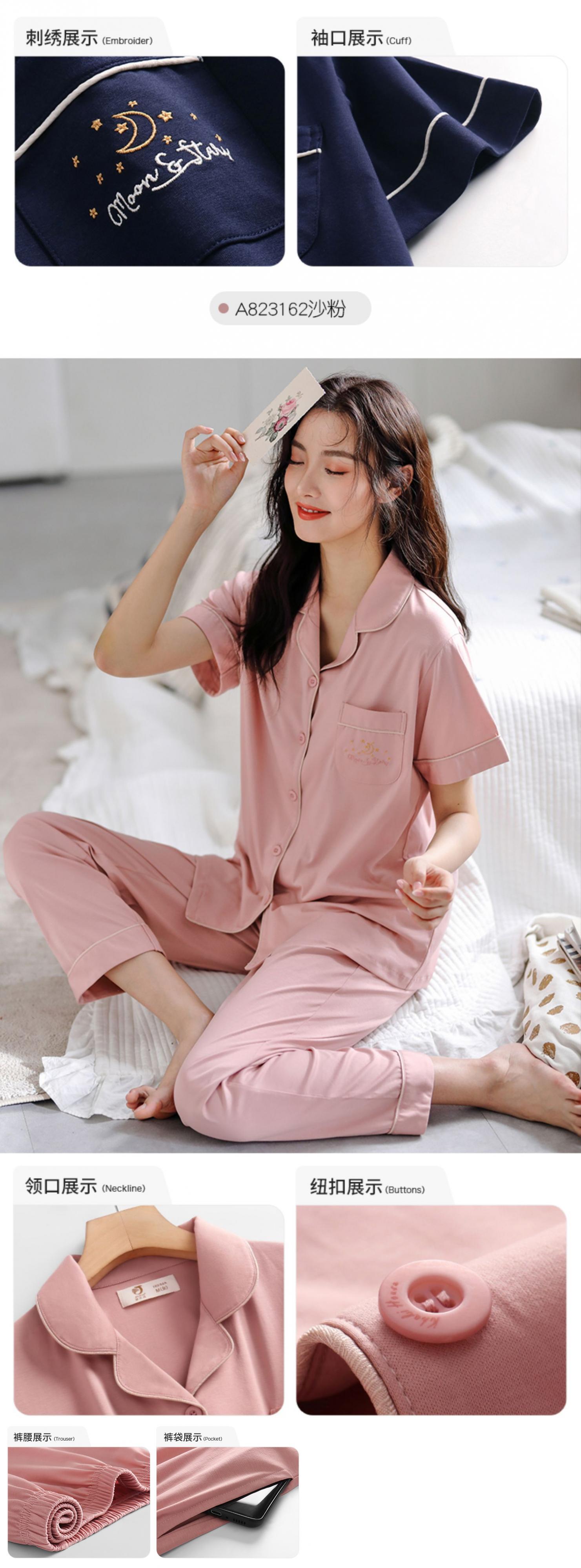 パジャマレディースサマーコットン半袖パンツホームサービスサマーシンコットンカーディガンプラスサイズ肌にやさしいコットン jial34380990361