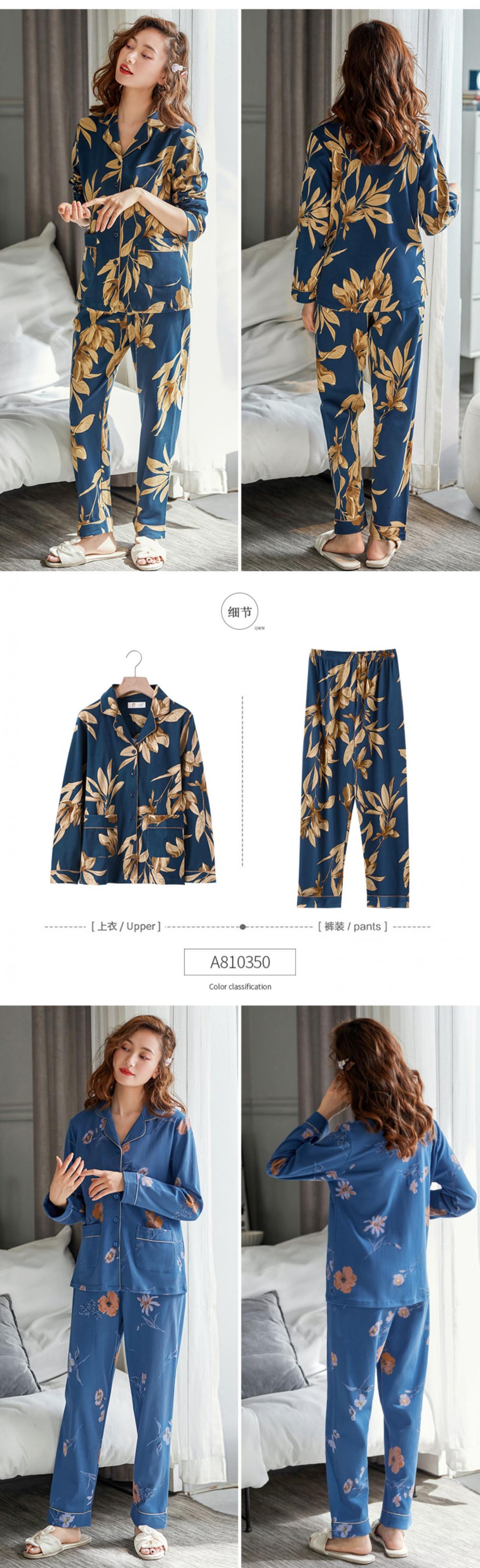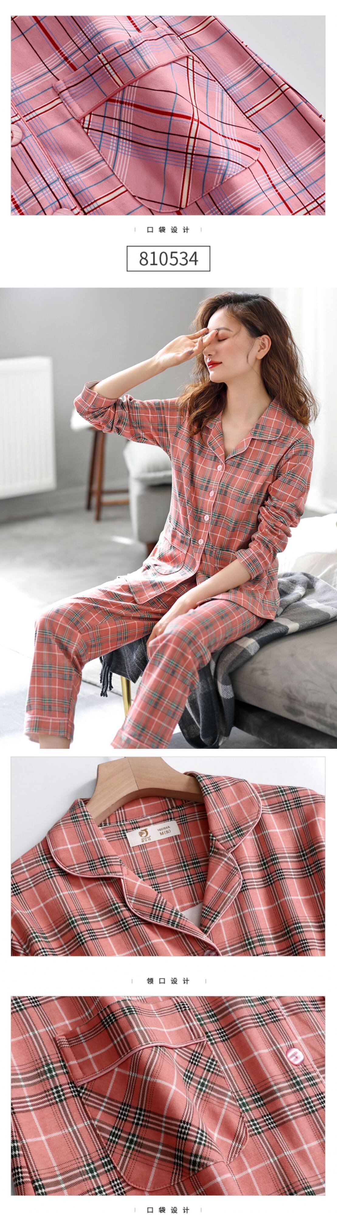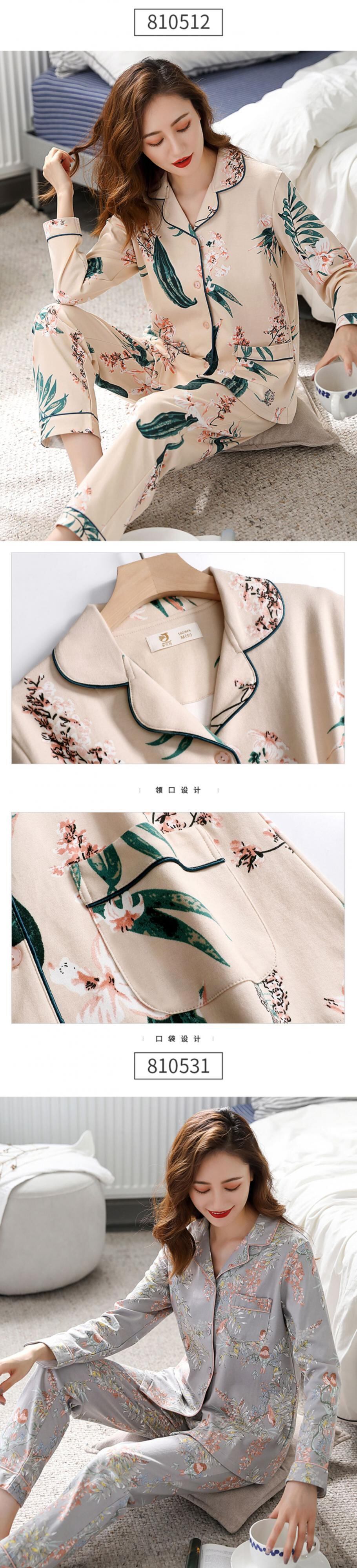 純綿の長袖ホームウェアのパジャマ女性の春と秋のモデル、中年の母親のスーツの綿の秋と冬の薄いモデル jial16926485133