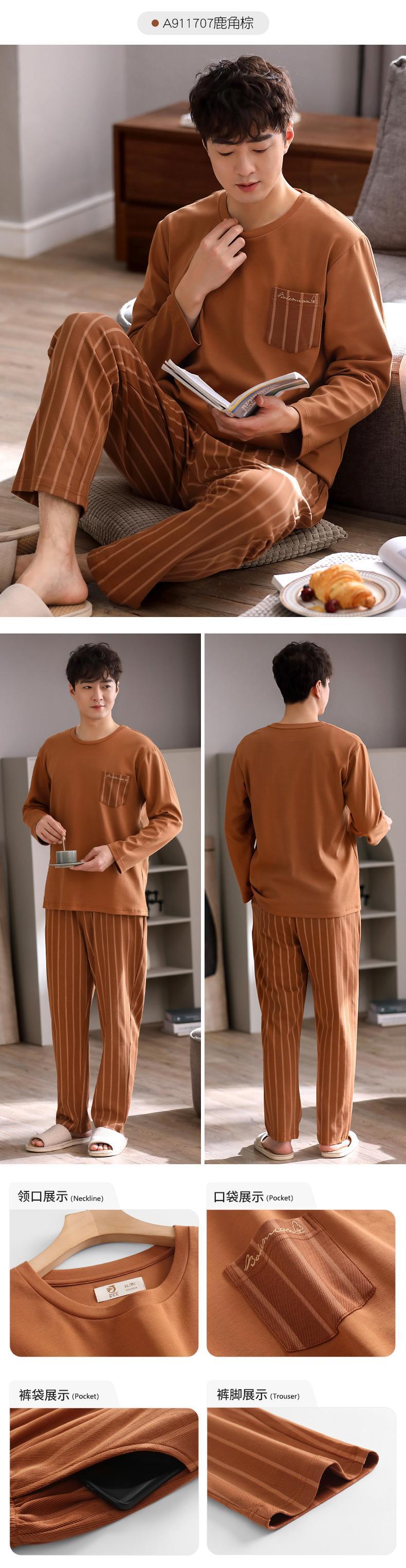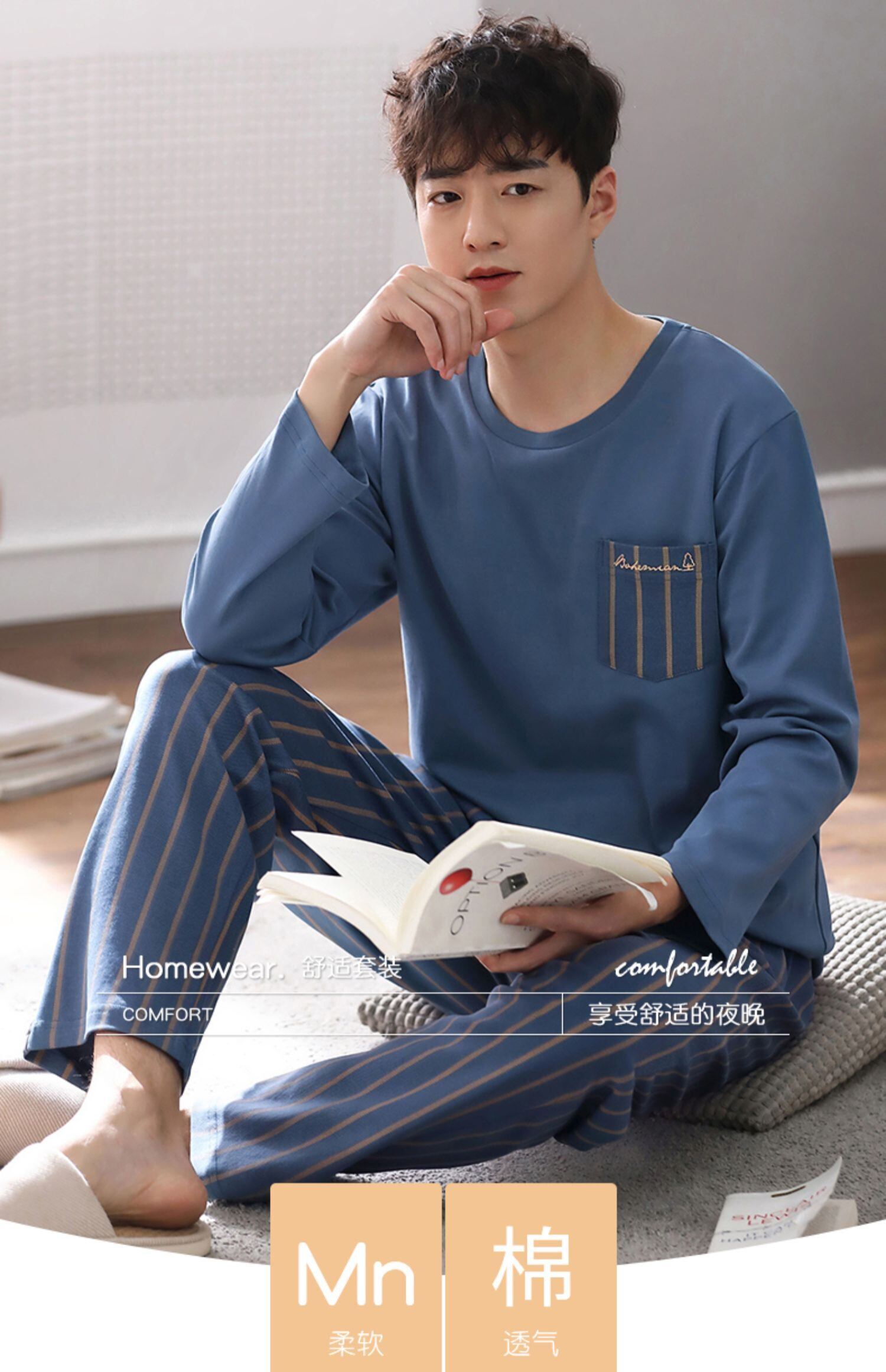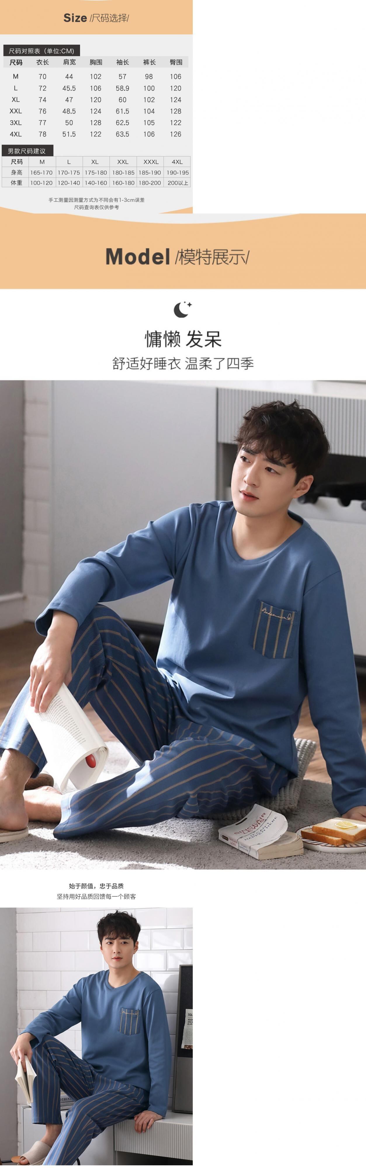 2021年の新しいスタイルのパジャマメンズ春と秋のモデル秋の綿長袖ホームウェア春と夏の薄い綿のスーツ jial80542407587