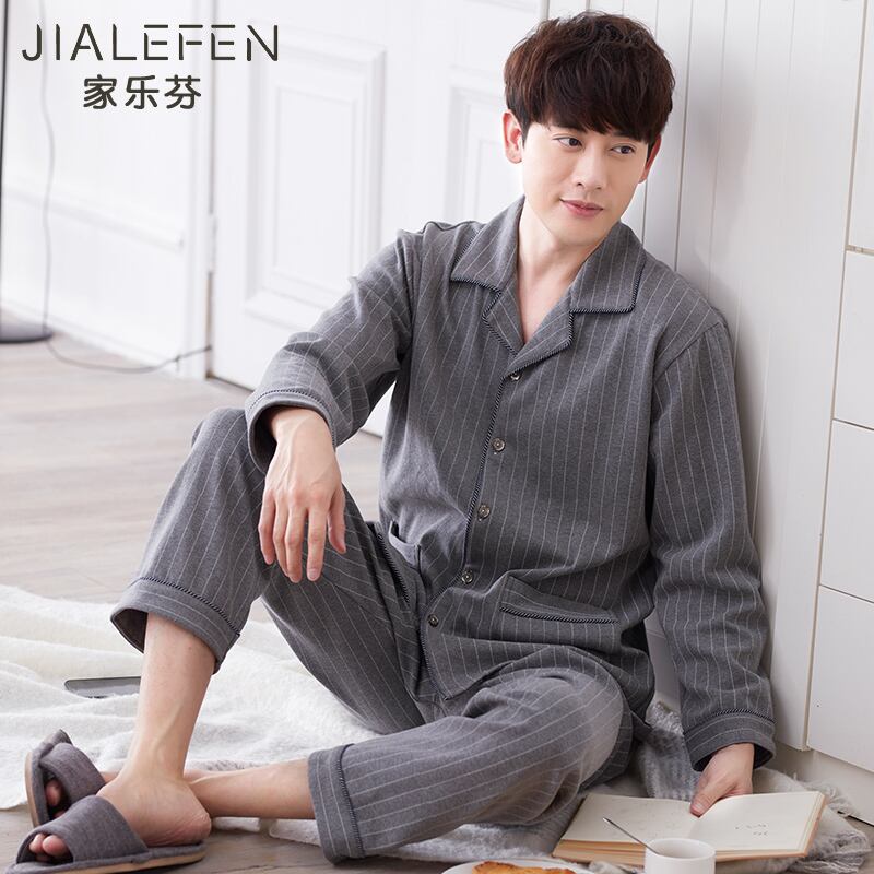 純綿長袖家庭服のパジャマメンズ春秋モデル秋冬モデル中年父親のメンズコットンモデル jial75743648052