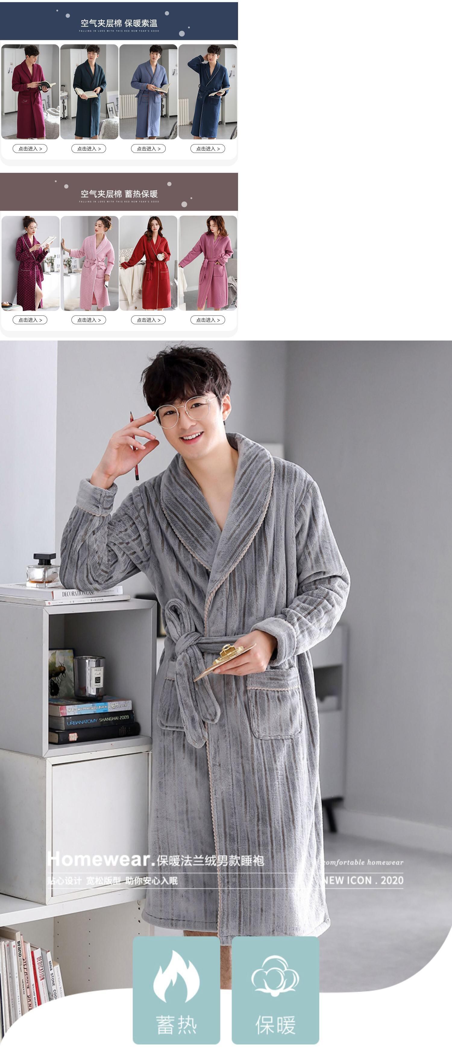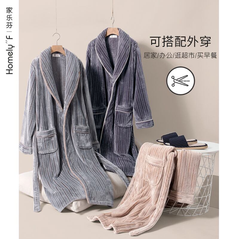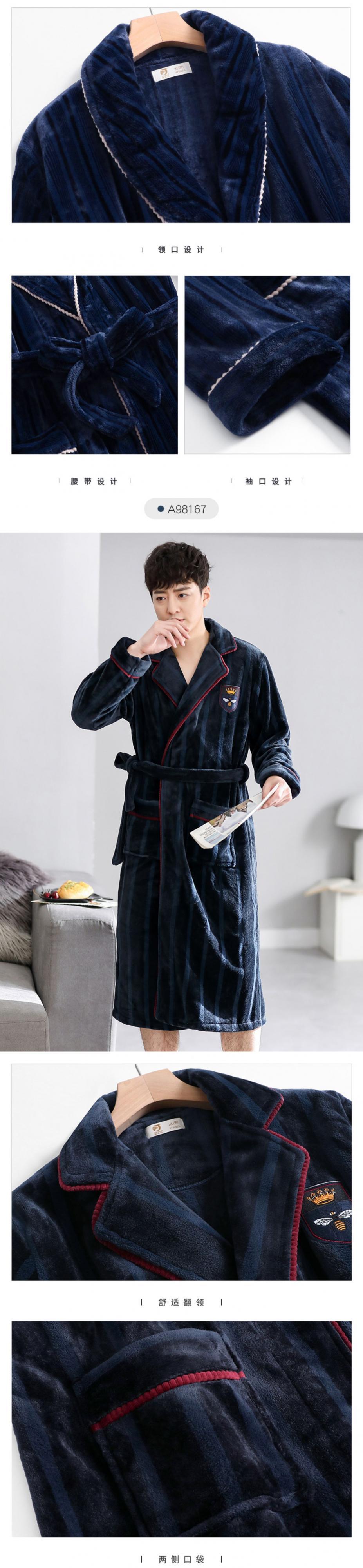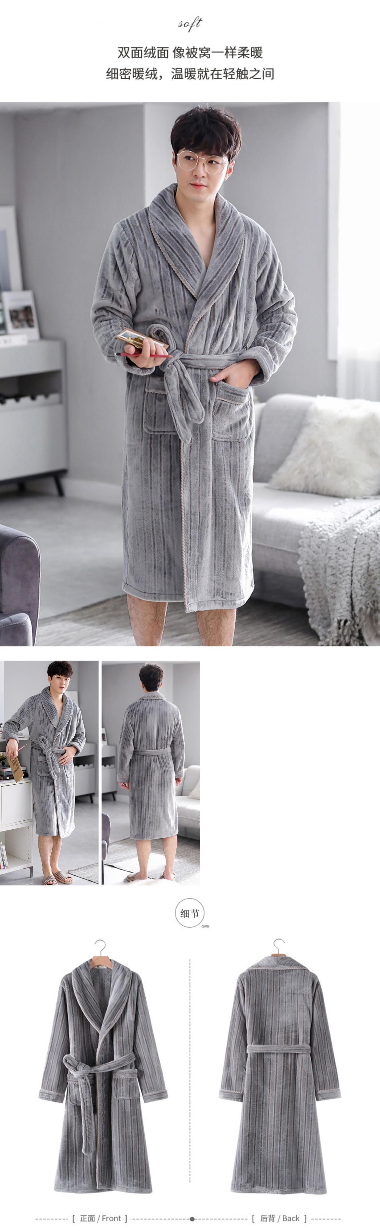 パジャマメンズナイトガウンメンズ秋冬スタイル冬コーラルフリースシックスタイルプラスフリースウォームフランネルバスローブロングスタイル jial15045169973