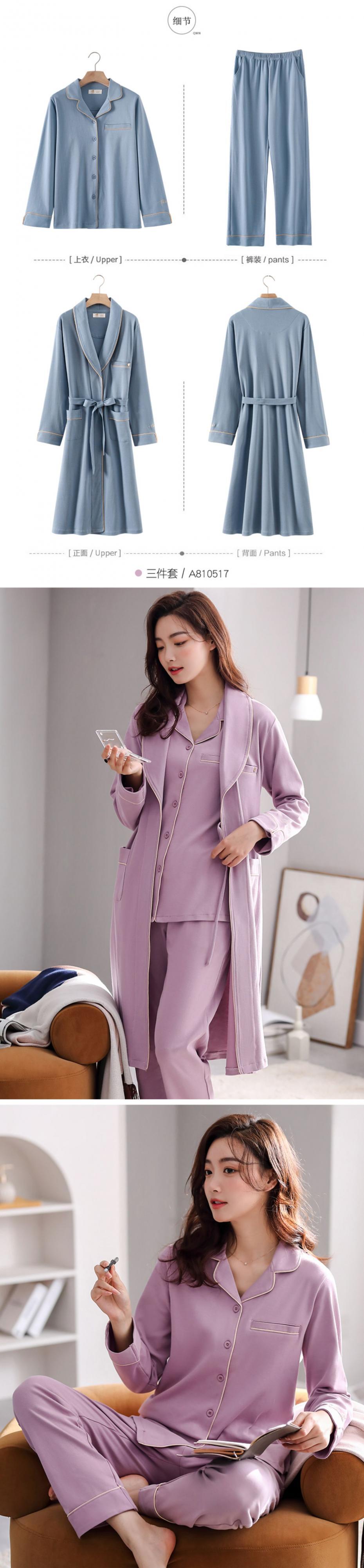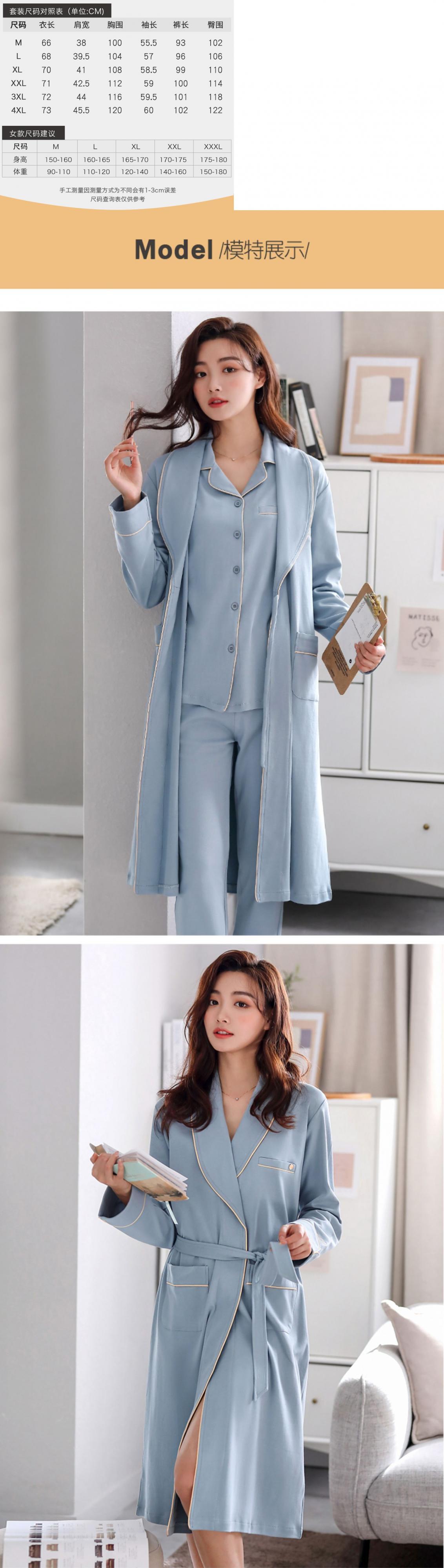 スリーピングガウンレディースパジャマ春と秋のバスローブナイトドレス長く薄い綿長袖綿ホームサービススリーピーススーツ jial5175399199