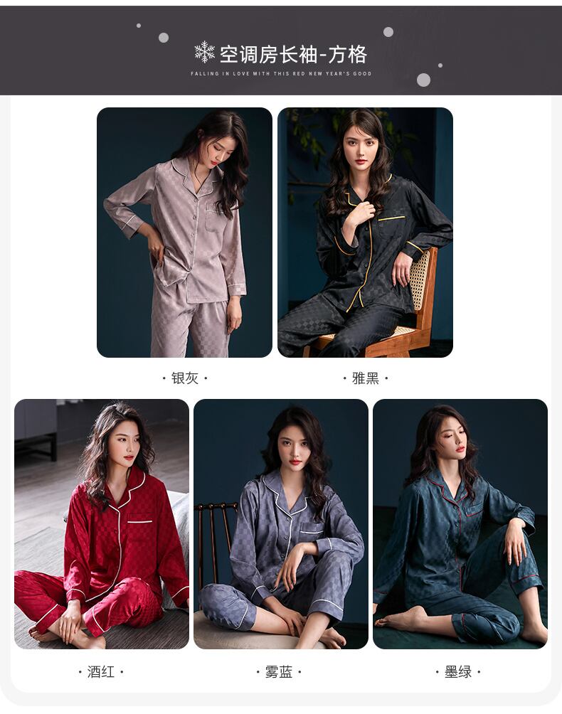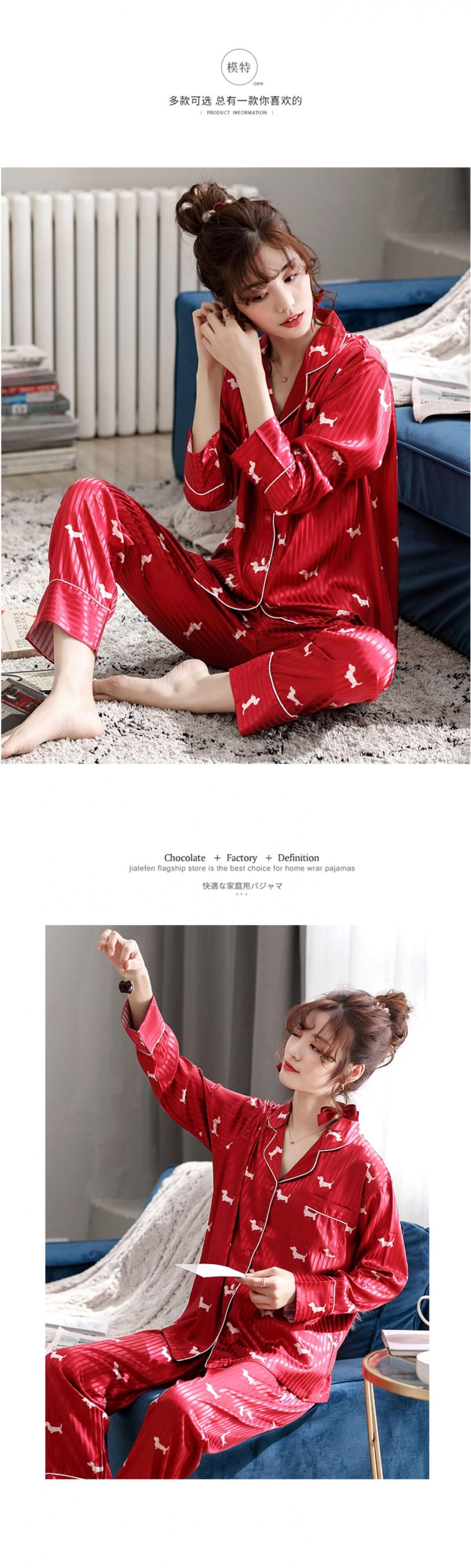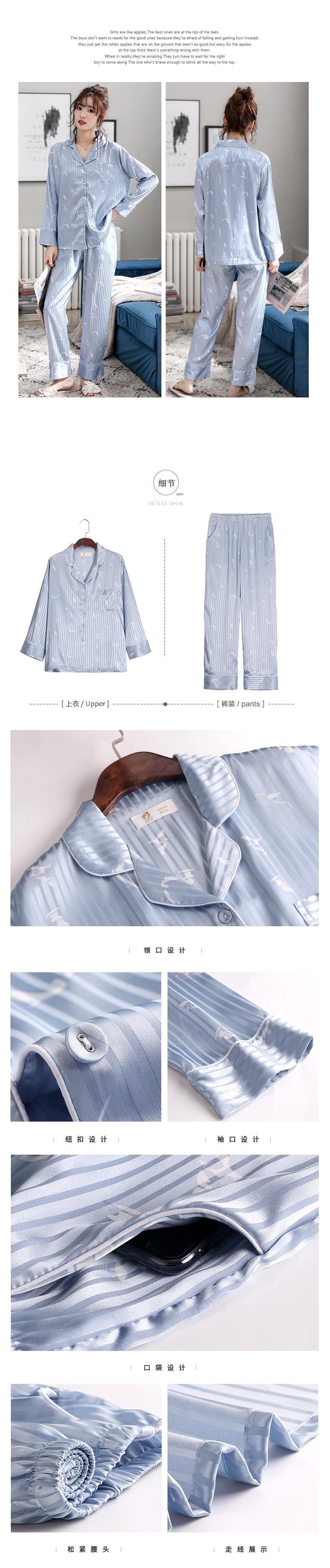 パジャマレディース春秋秋薄夏アイスシルク長袖シミュレーションシルクシルクサテンツーピーススーツ jial827766091