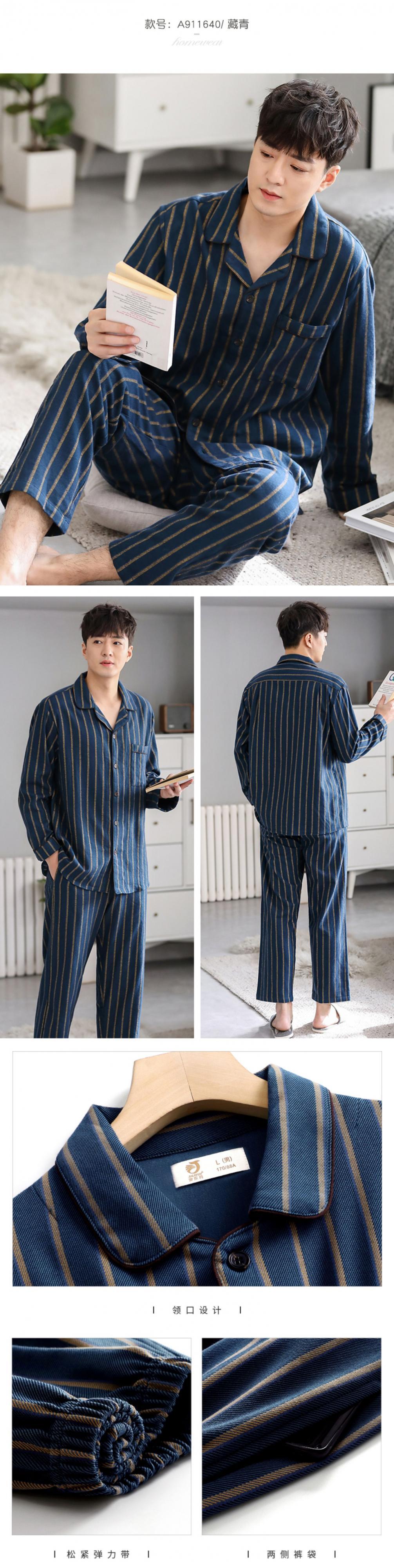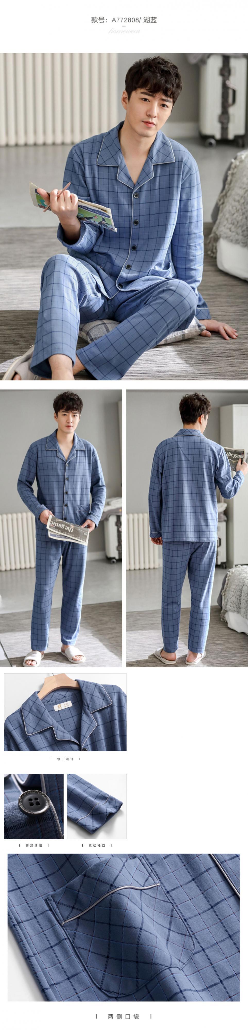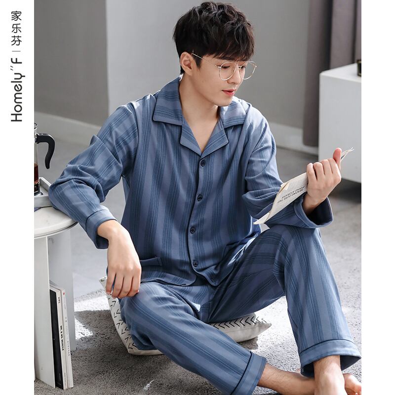 パジャマメンズ秋、春、秋、コットン長袖ホームウェア、メンズコットン秋、冬、冬の薄手のスーツ jial9141744589