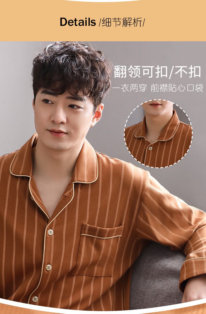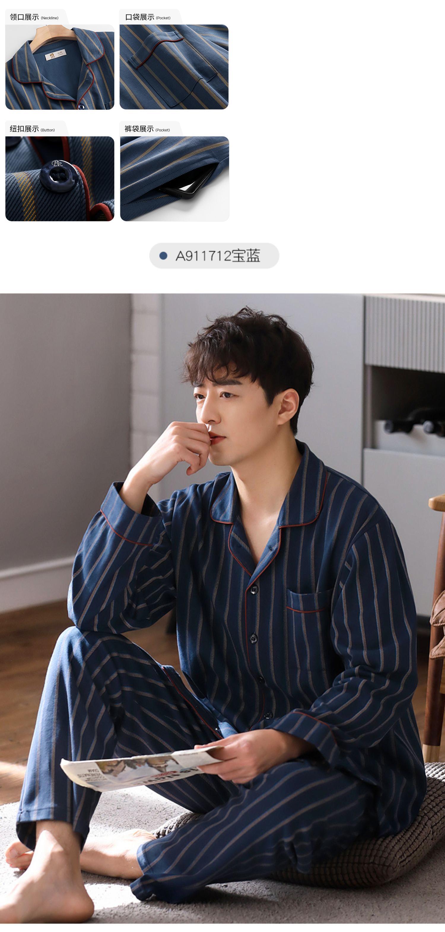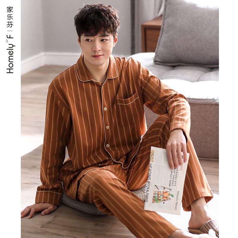 2021年新作パジャマメンズ春秋モデル秋コットン長袖ホームウェアメンズ四季コットンスーツ jial8105618828