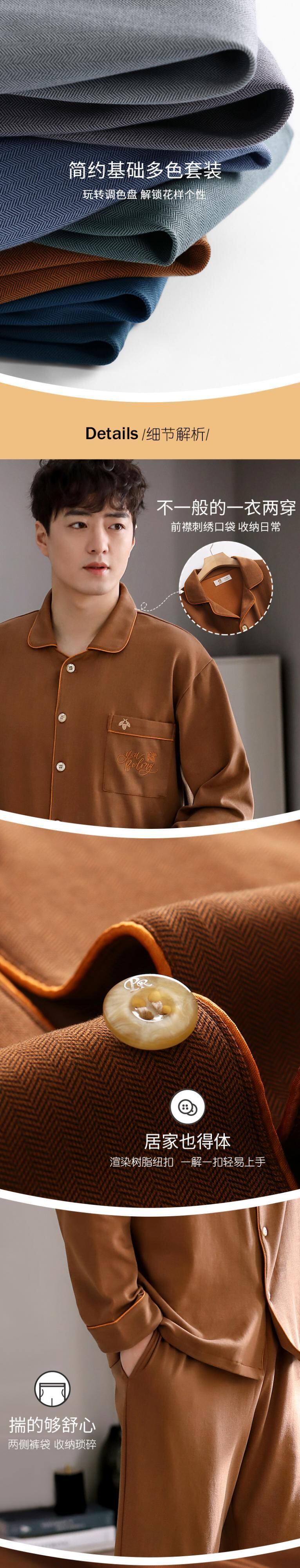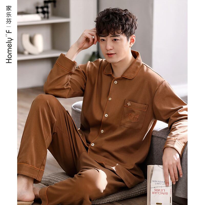 2021年新作パジャマメンズ春秋モデル秋コットン長袖ホームウェアメンズ四季コットンスーツ jial89164316486