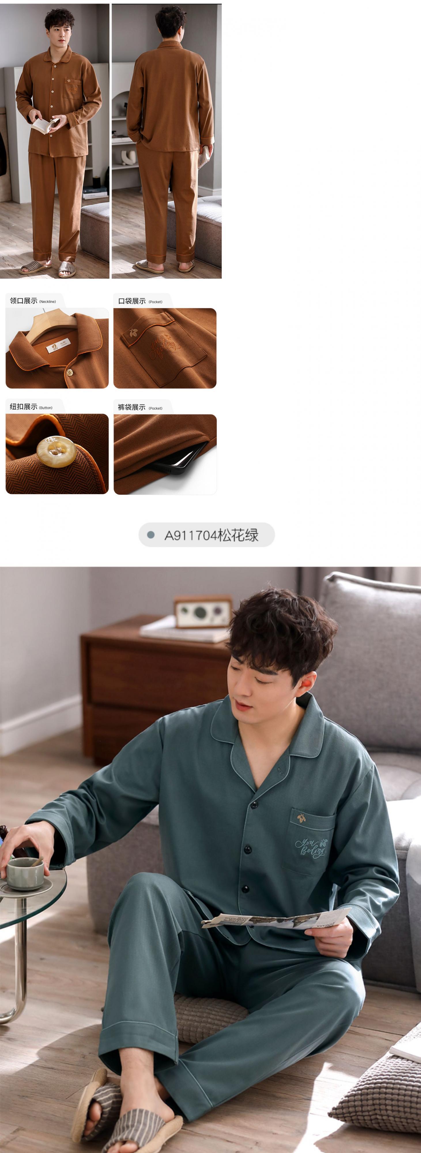 2021年新作パジャマメンズ春秋モデル秋コットン長袖ホームウェアメンズ四季コットンスーツ jial77969027067