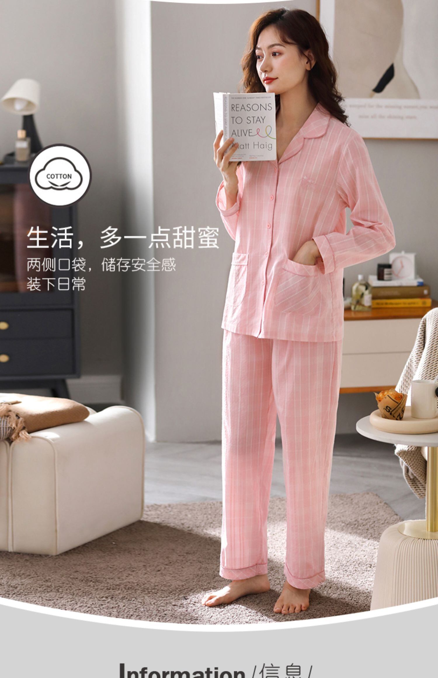 綿ガーゼパジャマレディース春夏夏長袖純綿ホームサービス春秋秋薄スーツ jial21367913266