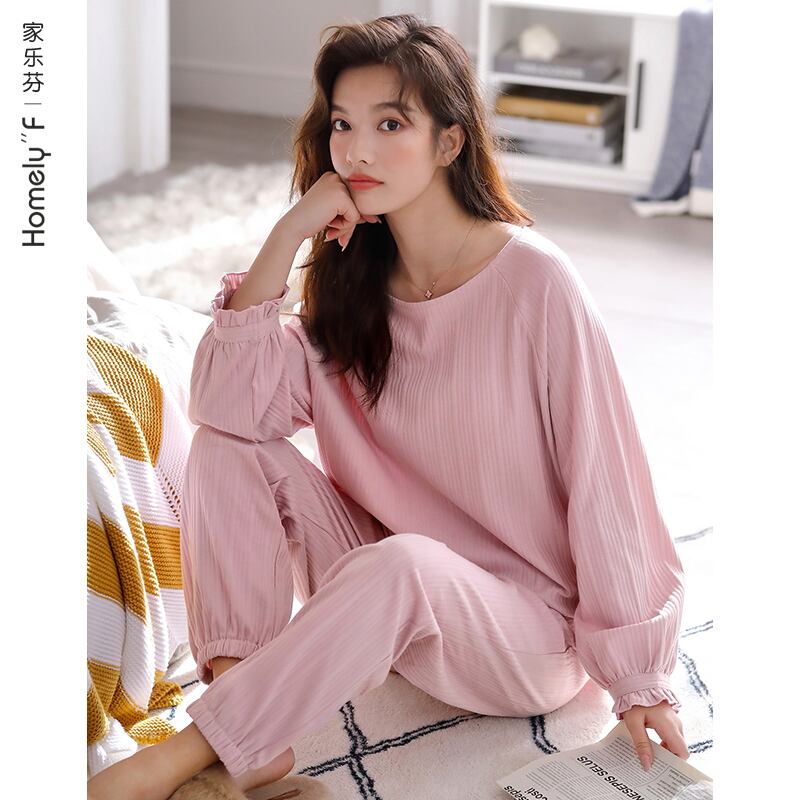 パジャマの女性の春と秋のモデルと秋の綿の長袖の家は、屋外で着用できる綿100%の薄い春と夏のレジャースーツを着用します jial98561612794