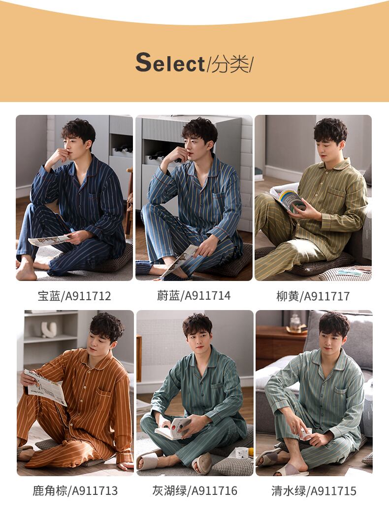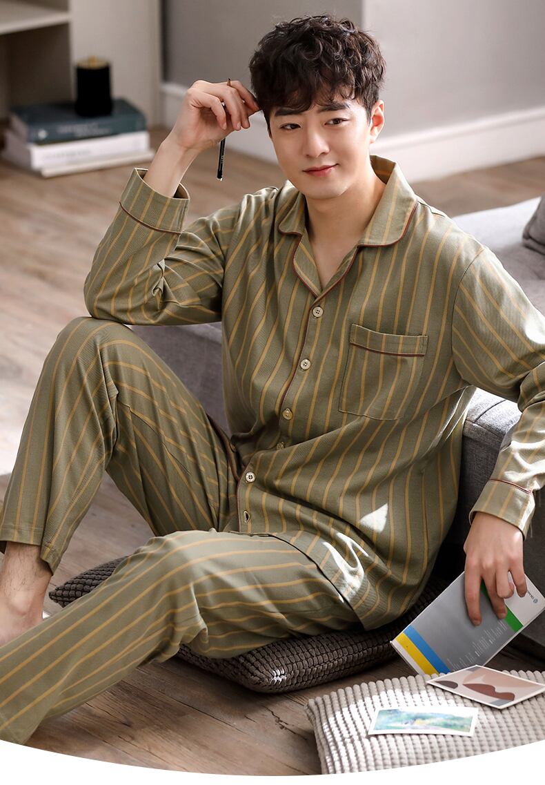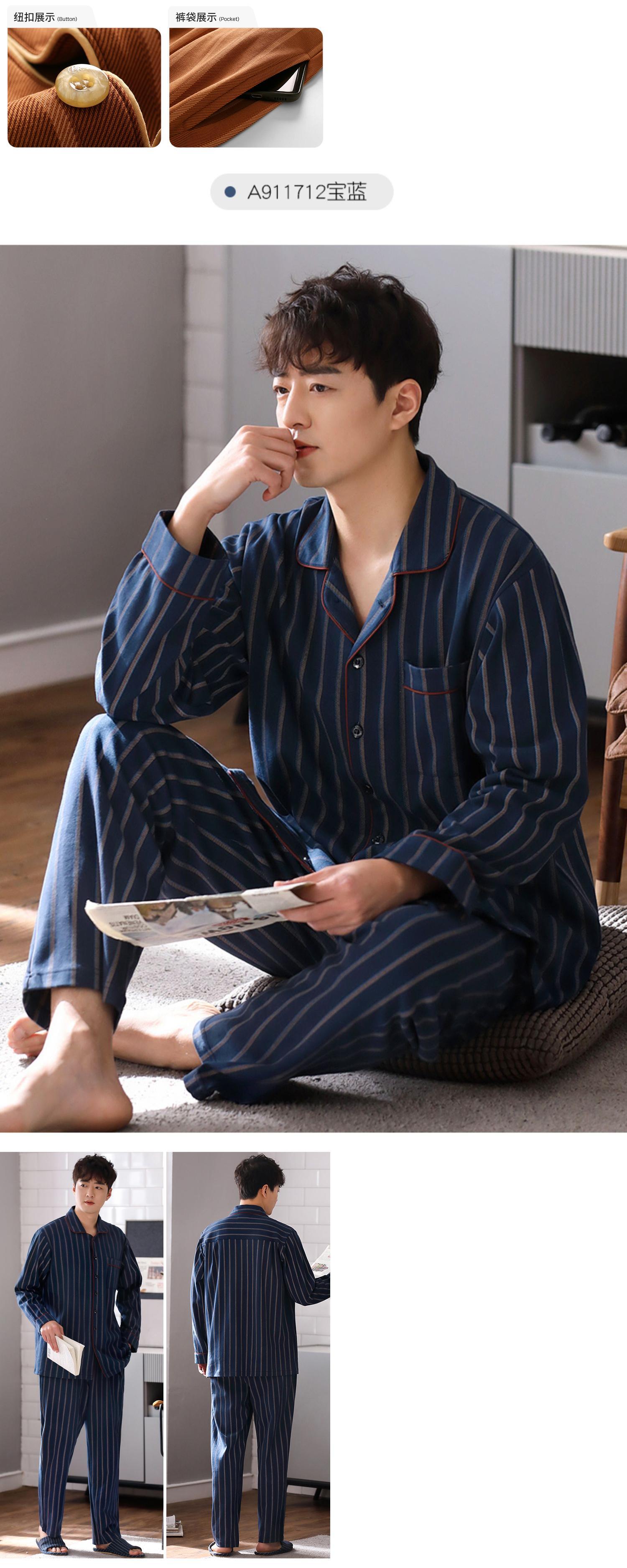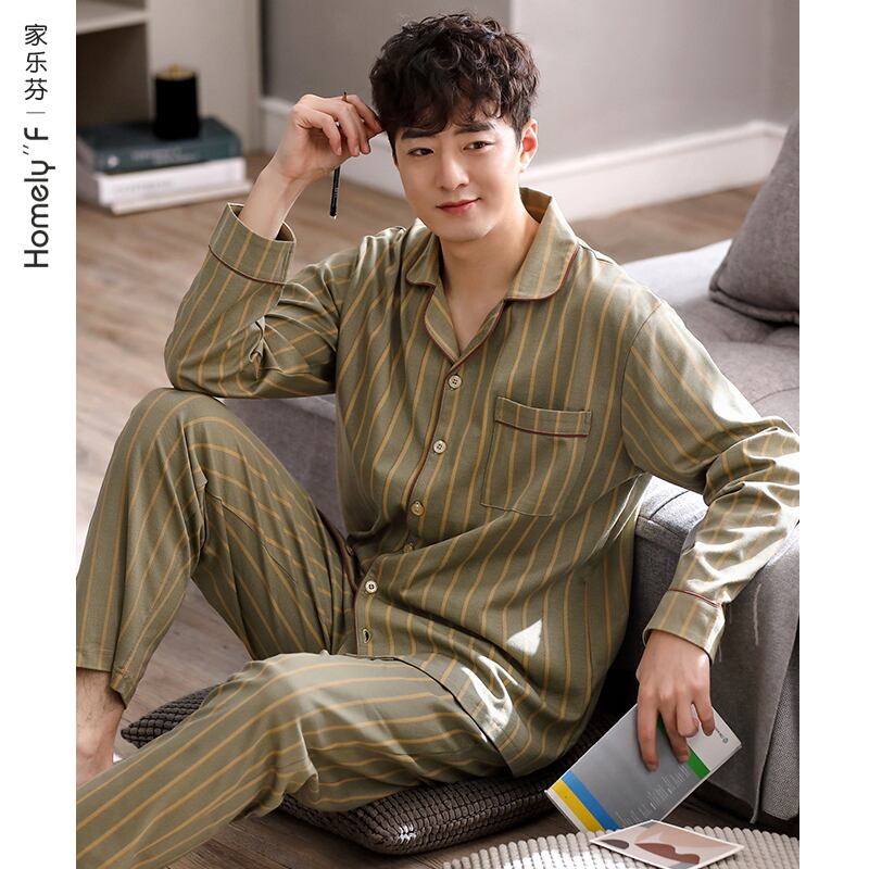 2021年新作パジャマメンズ春秋モデル秋コットン長袖ホームウェアメンズ四季コットンスーツ jial85305375850