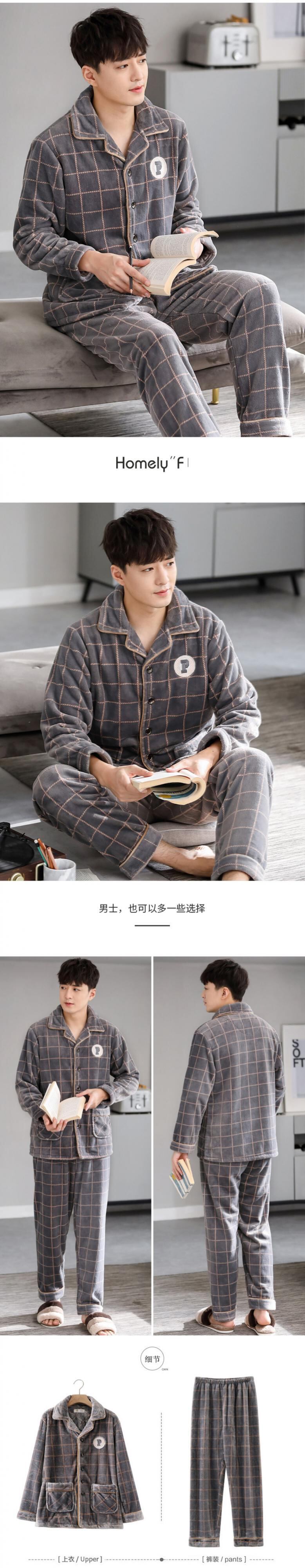 パジャマメンズ秋冬モデルと冬コーラルベルベット厚みとベルベット暖かさフランネルホームサービスメンズウィンタースーツ jial17072822318