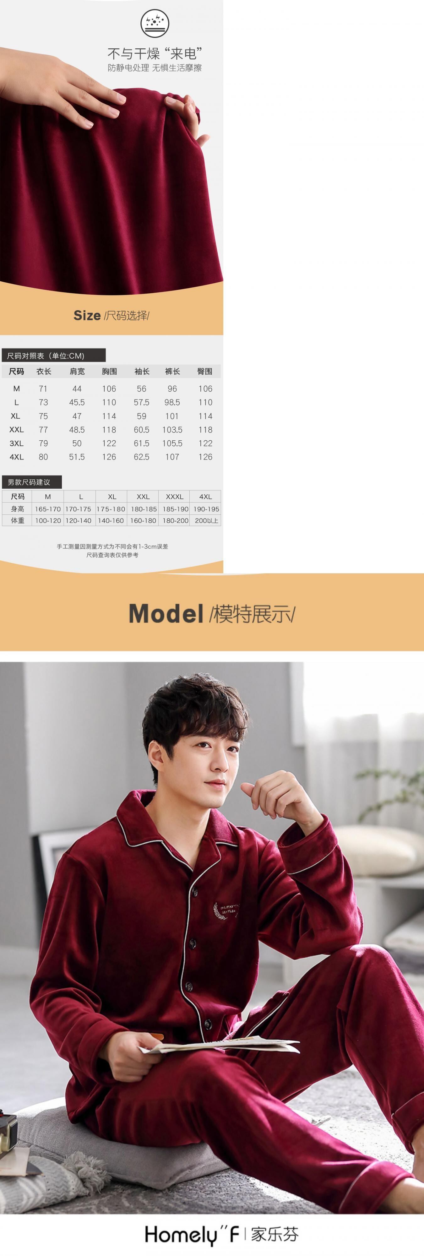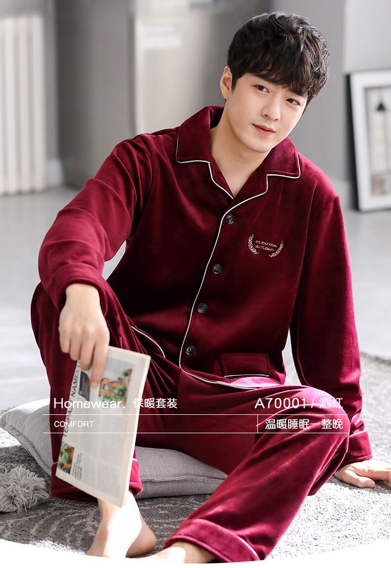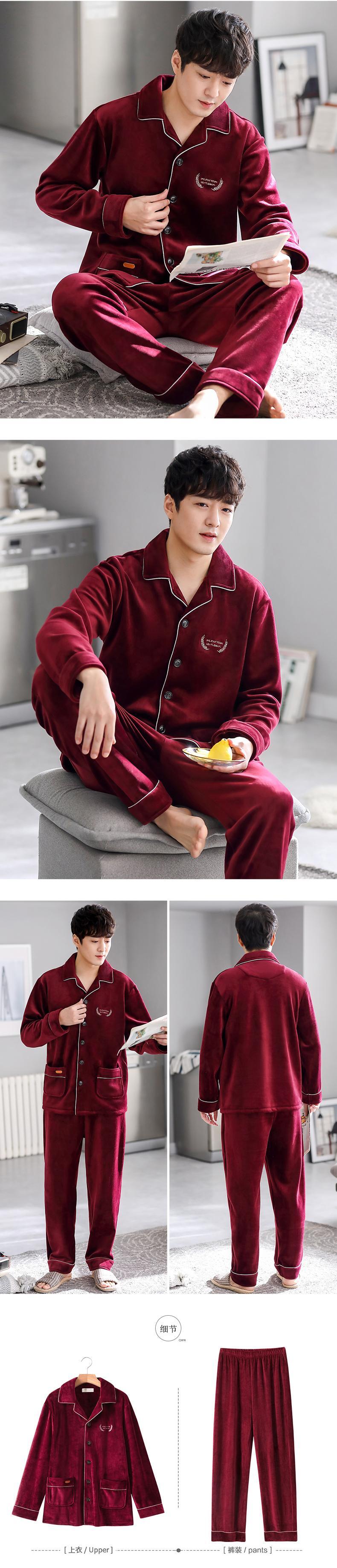 アイランドフリースパジャマメンズ秋冬モデルと冬の薄いフランネルコーラルフリースとベルベットの厚みのある出生年の赤 jial62081590387