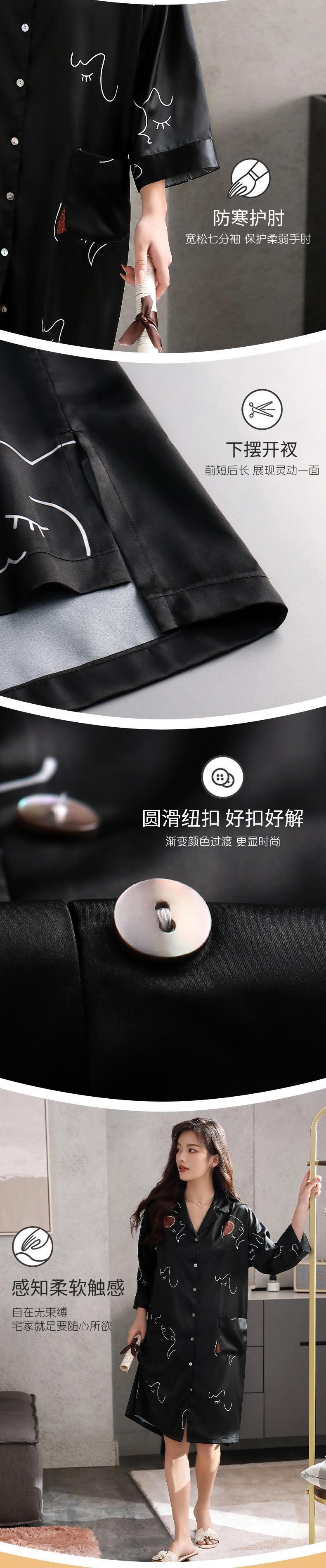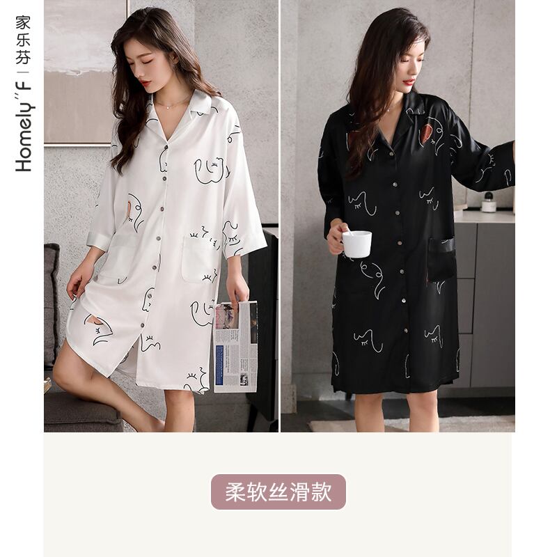 ナイトスカートレディースパジャマ春夏夏シルクアイスシルク春秋薄手の七分袖カーディガンシャツセクシーな長袖 jial95935462453
