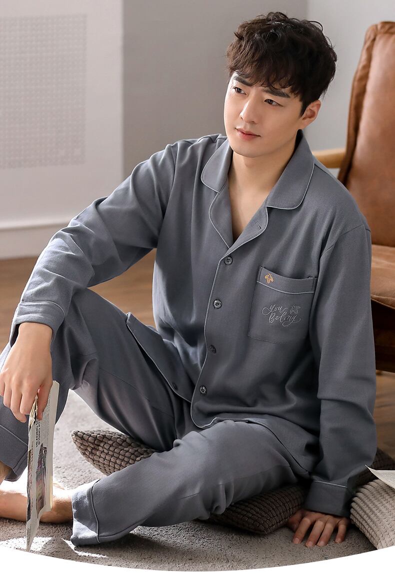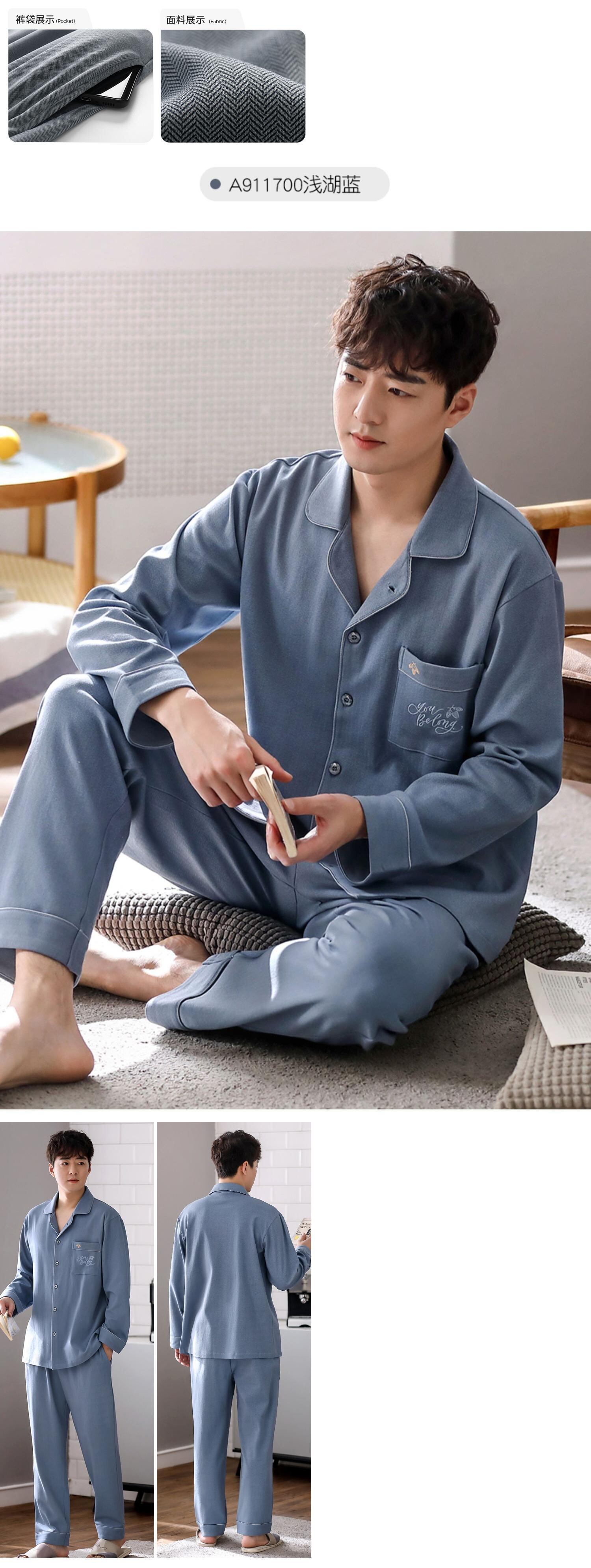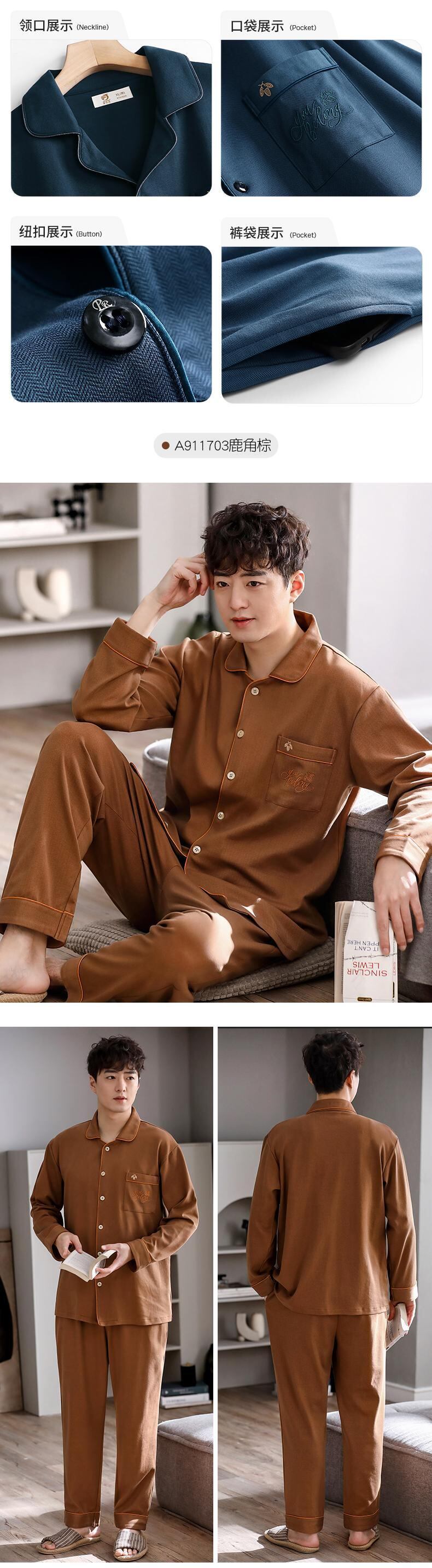 2021年新作パジャマメンズ春秋モデル秋コットン長袖ホームウェアメンズ四季コットンスーツ jial7772514068