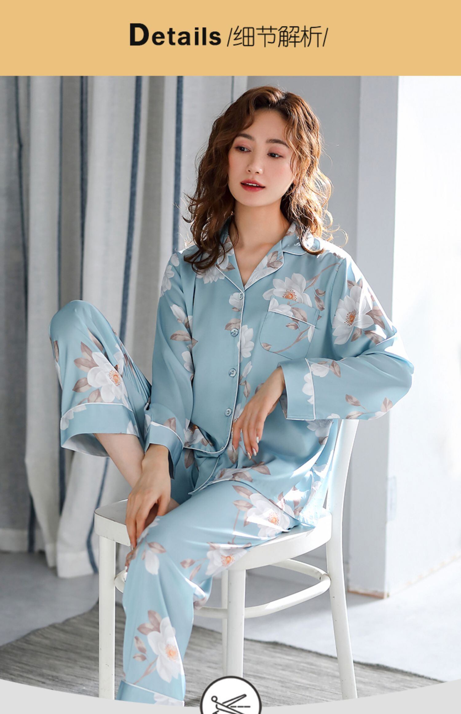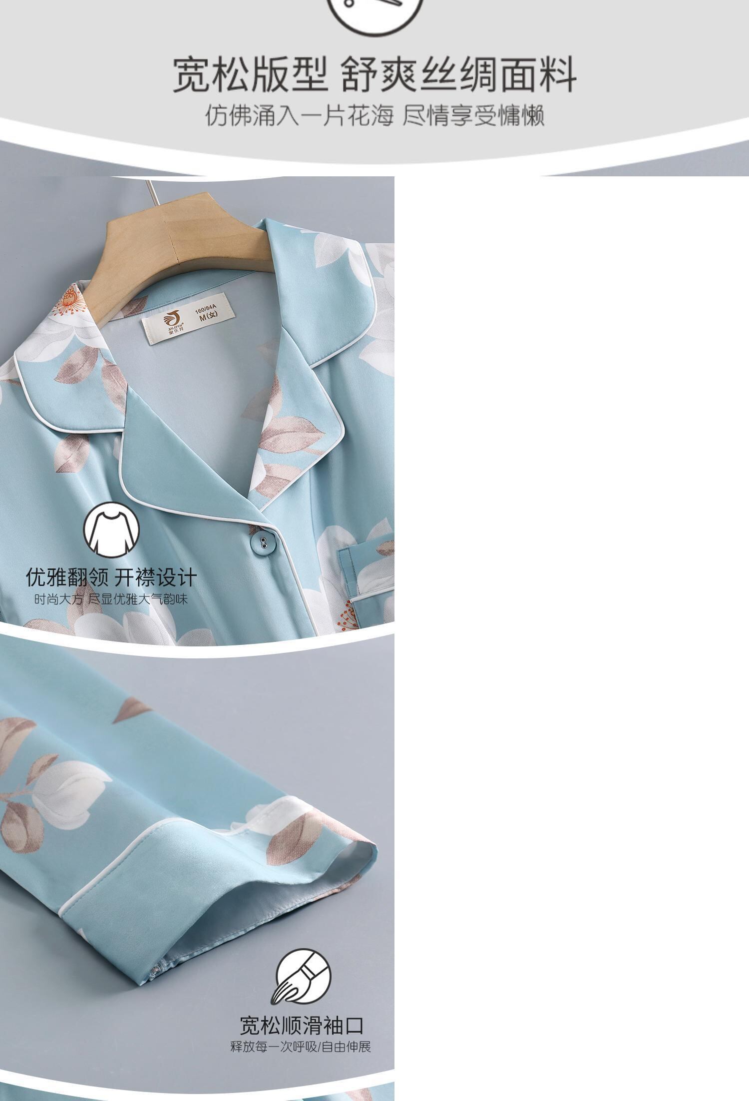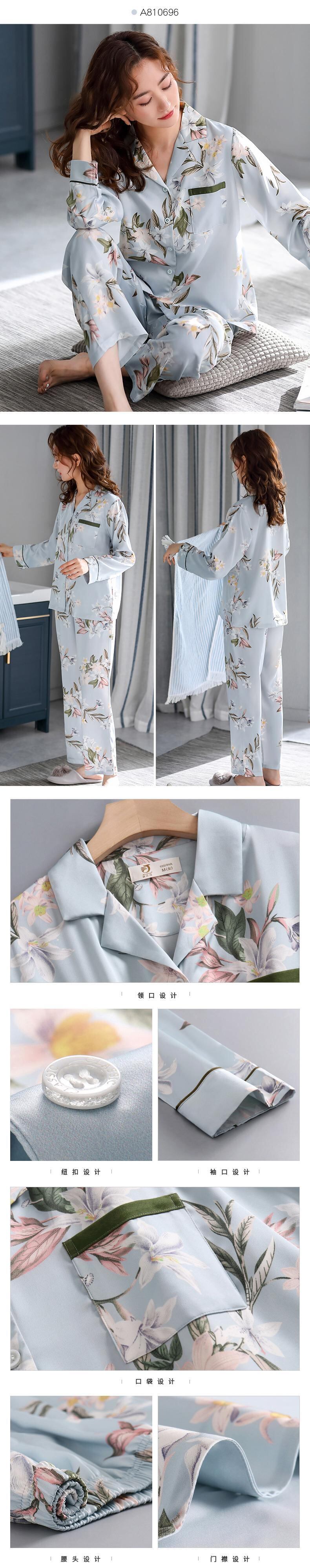パジャマレディース春秋秋シルクアイスシルク長袖ホームサービス春夏夏薄手人工シルクスーツ jial7742855048