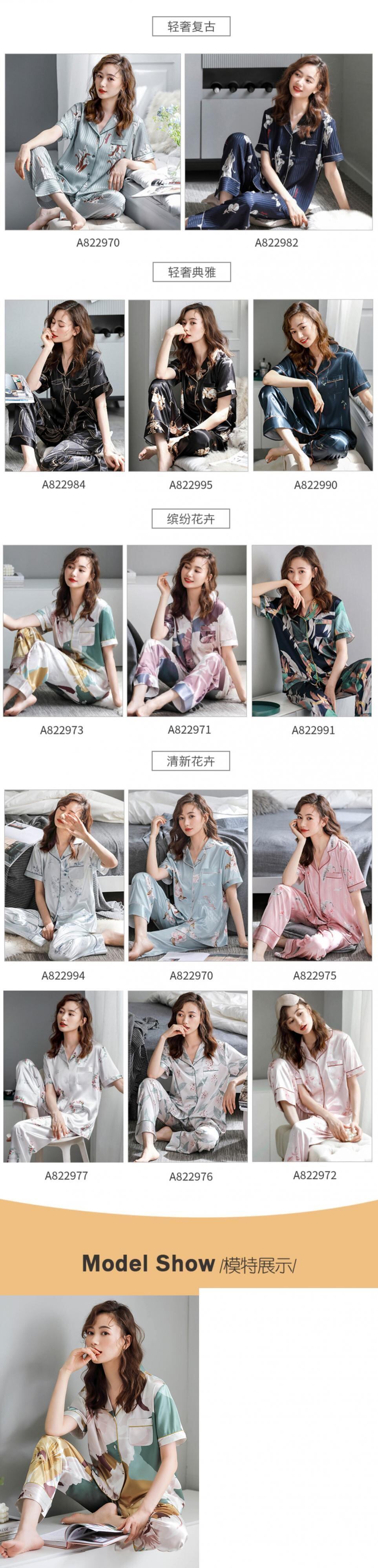 パジャマレディース夏シルクアイスシルク半袖パンツホームサービス夏薄人工シルク中年マザースーツ jial58597125983