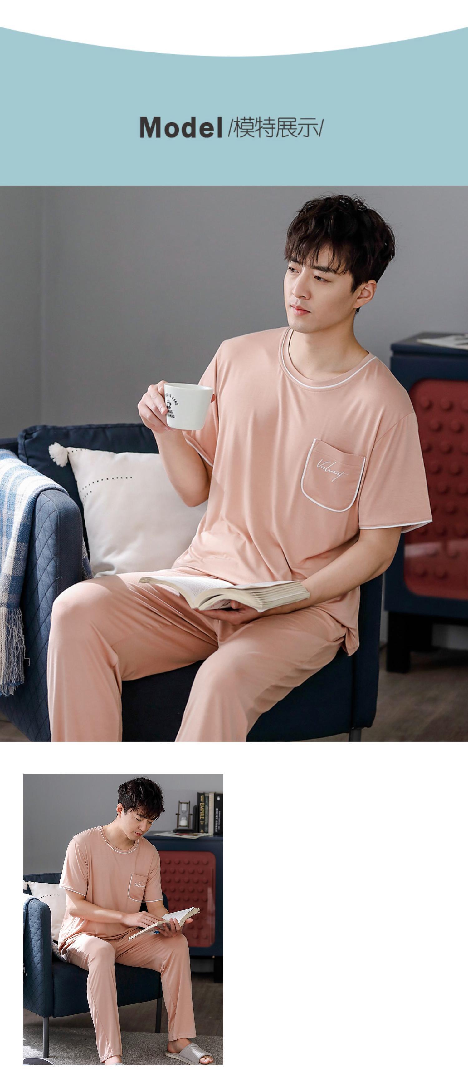 パジャマメンズサマー半袖パンツモーダルコットンシルクホームサービスメンズアイスシルククールサマーシンスーツ jial85429101919