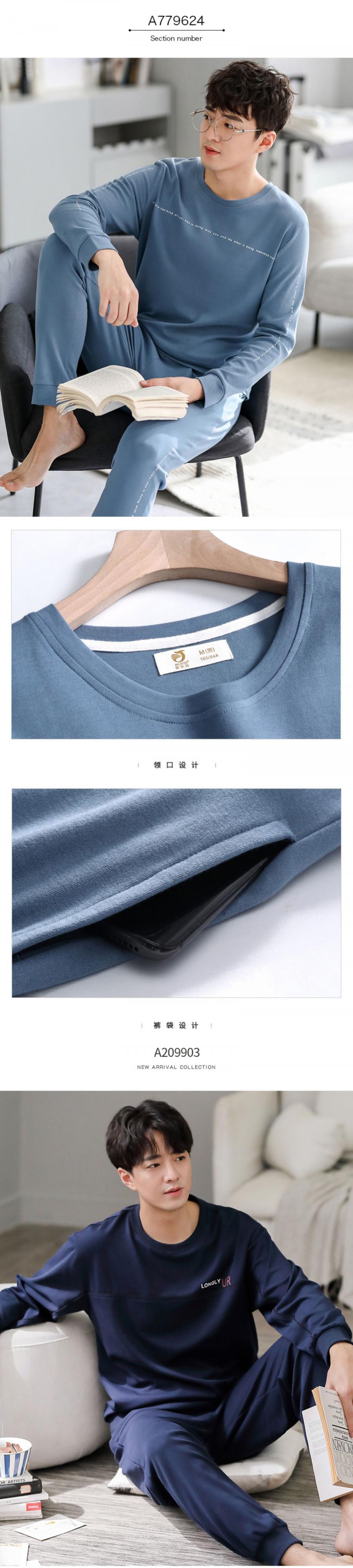 ピュアコットン長袖メンズホームのパジャマメンズ春秋モデルは、カジュアルヘッジプラスサイズのフルコットン秋冬モデルを着用 jial18400293929